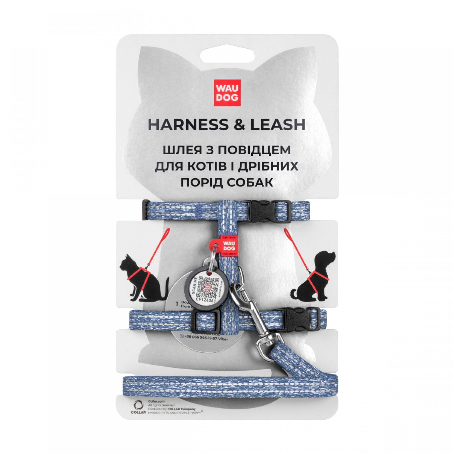 Collar WAUDOG Re-cotton шлея с поводком для котов и малых собак с QR-паспортом (синяя) XS.