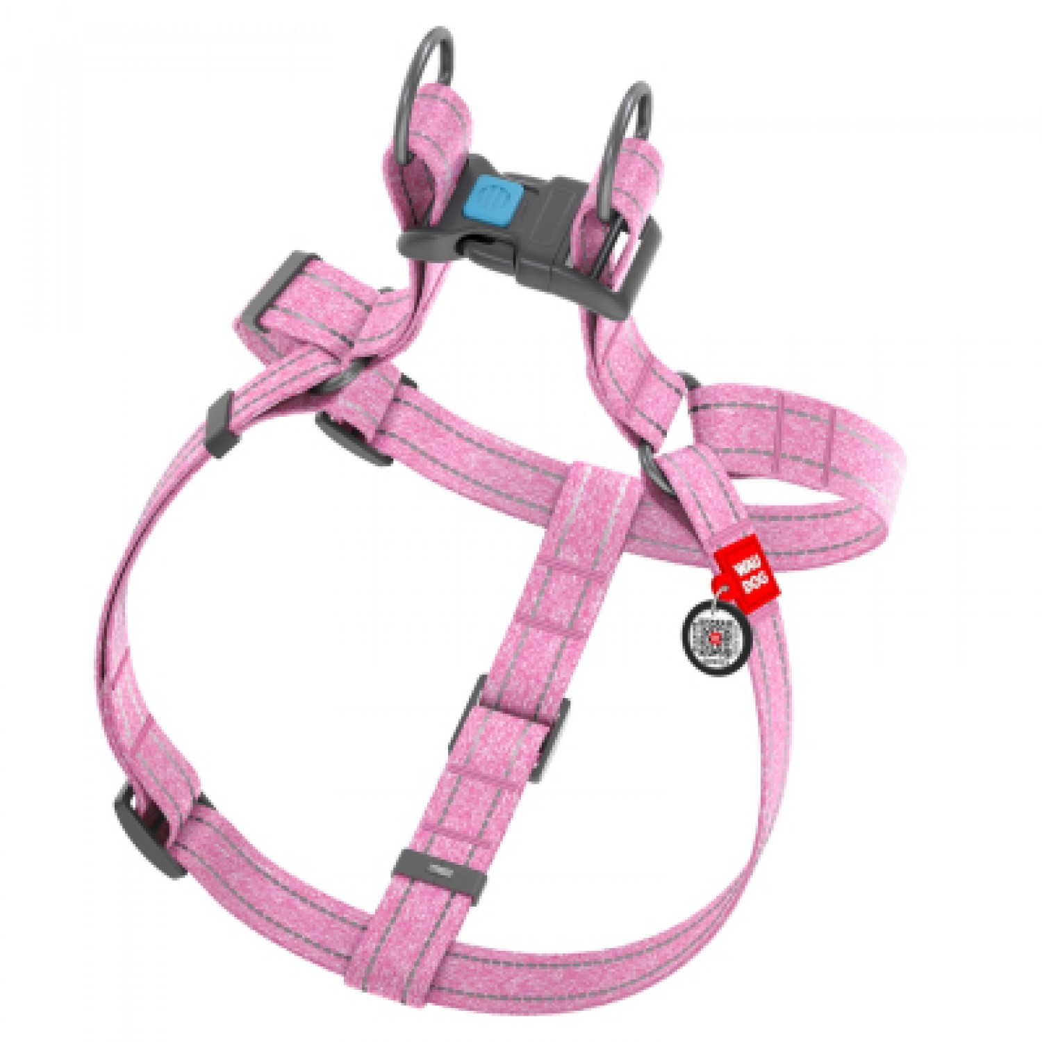 Collar WAUDOG Re-cotton светоотражающая шлея с QR паспортом для собак средних пород (розовая).
