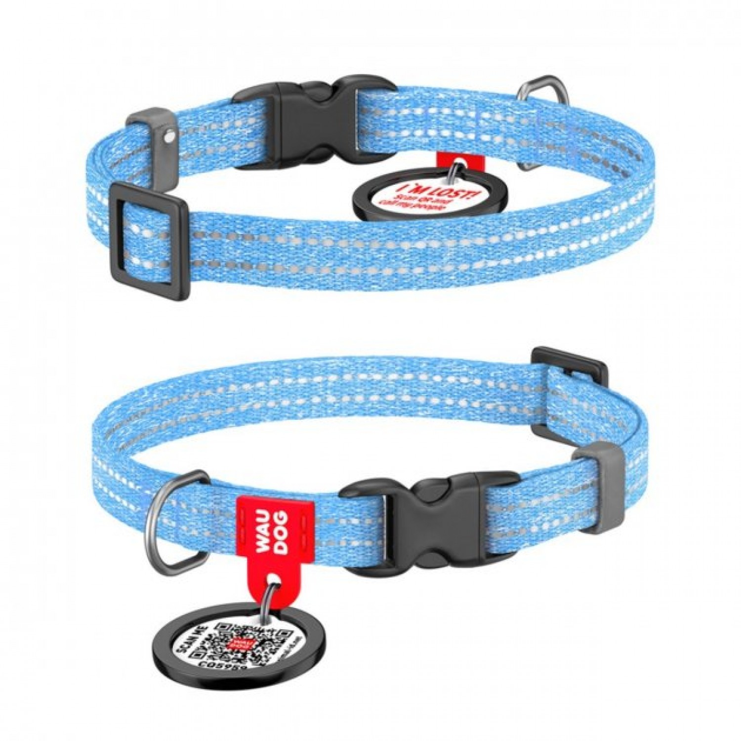 Collar WAUDOG Re-cotton светоотражающий ошейник для котов и собак с QR паспортом для собак (голубой).