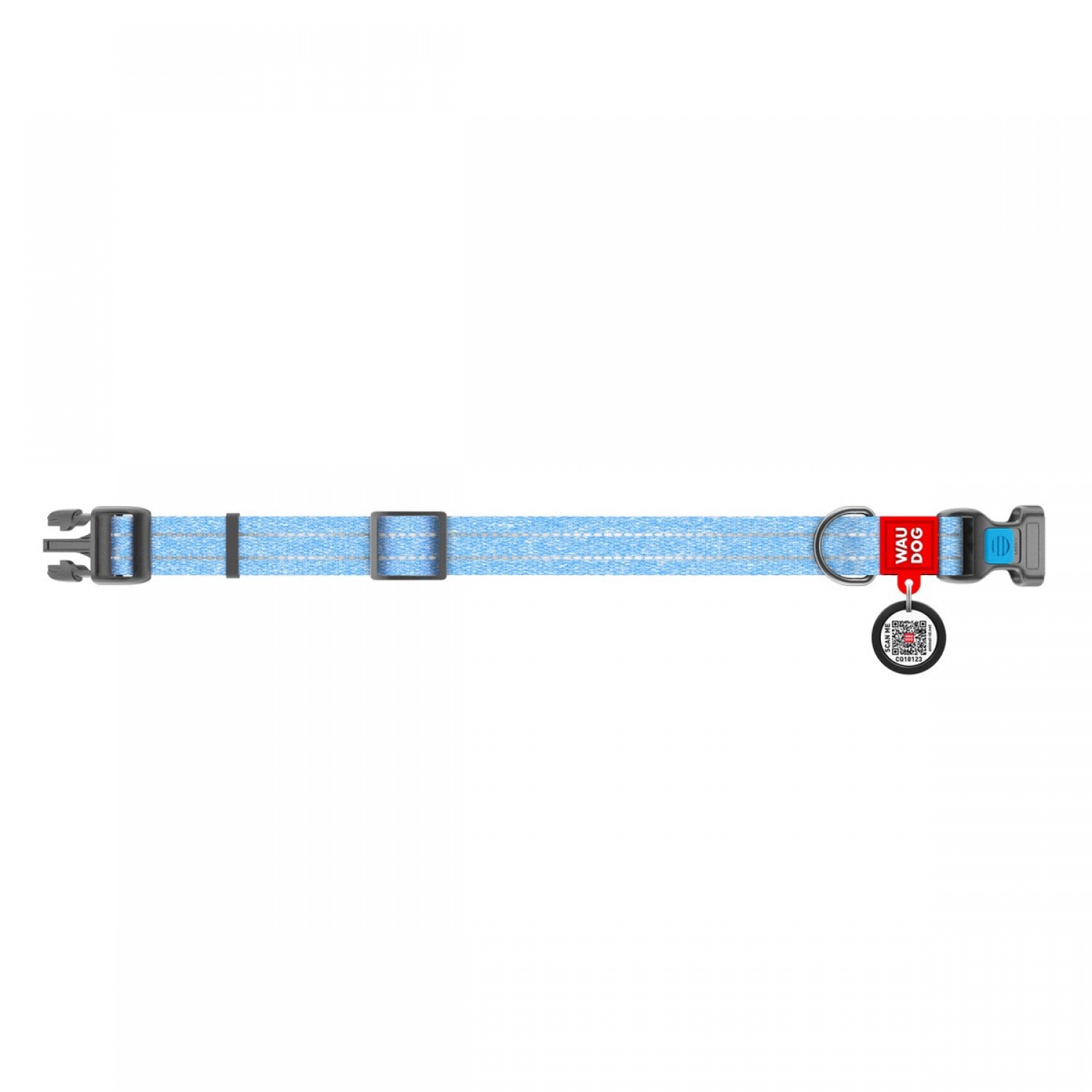 Collar WAUDOG Re-cotton светоотражающий ошейник с QR паспортом для собак (голубой).