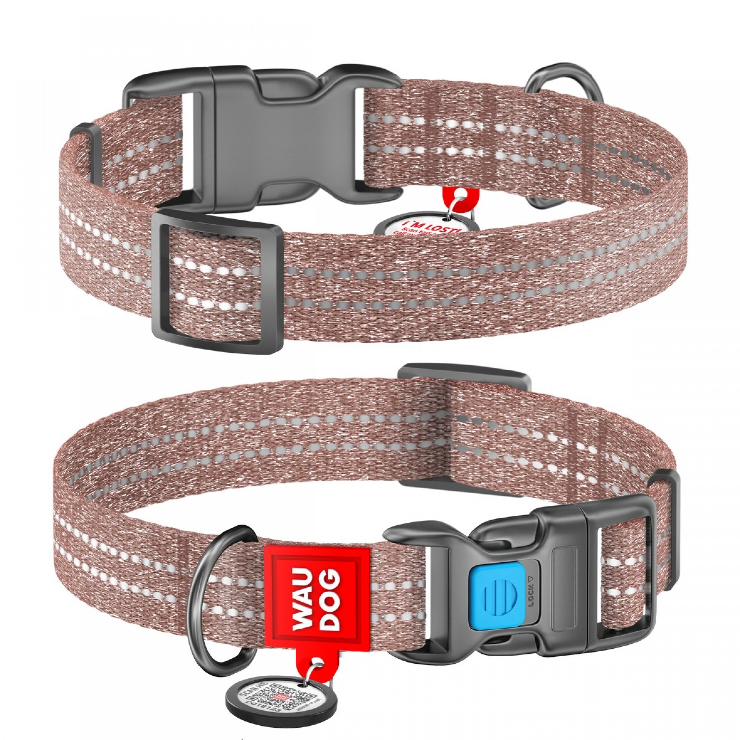 Collar WAUDOG Re-cotton светоотражающий ошейник с QR паспортом для собак (коричневый).