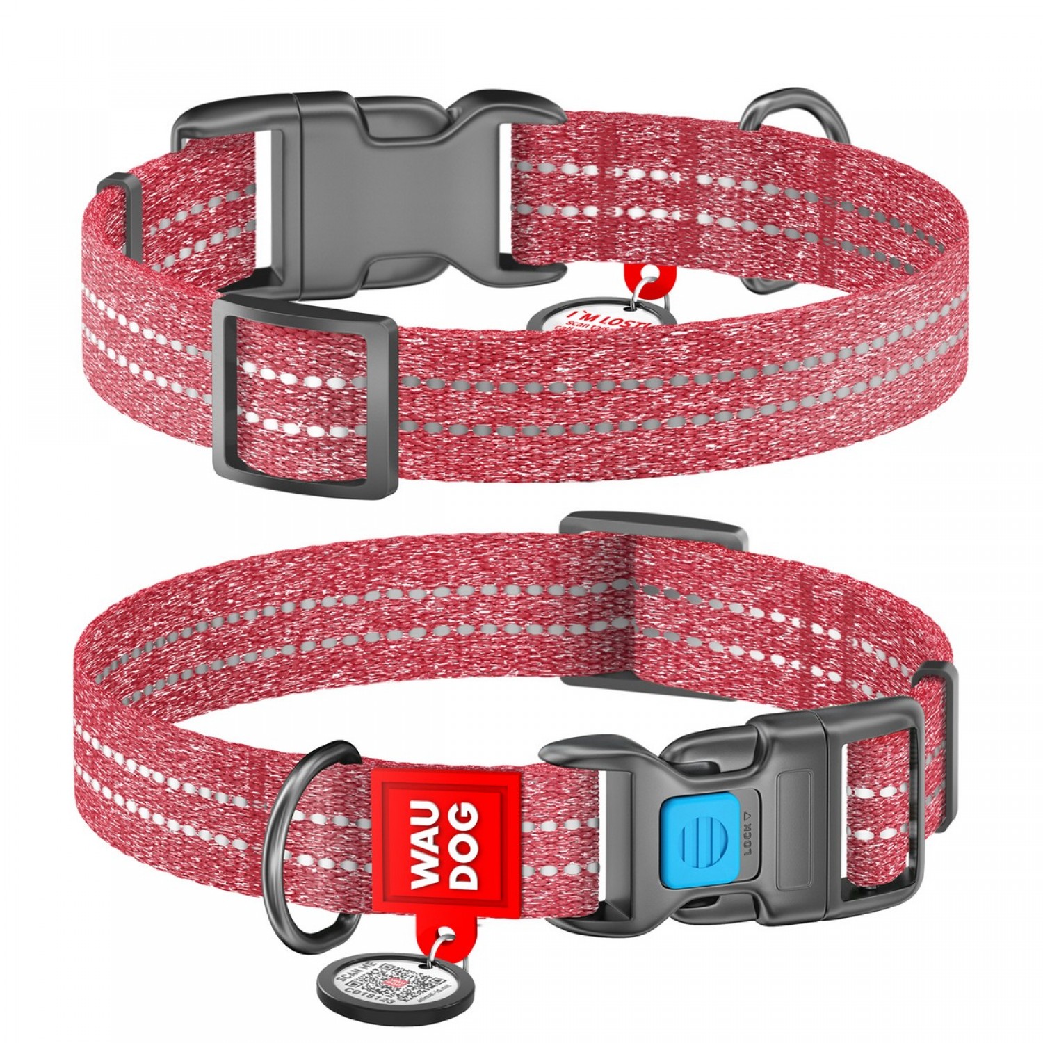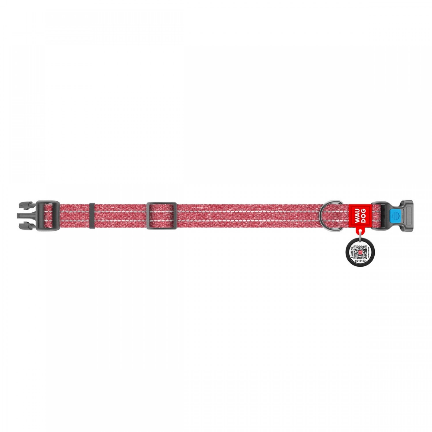 Collar WAUDOG Re-cotton светоотражающий ошейник с QR паспортом для собак (красный).