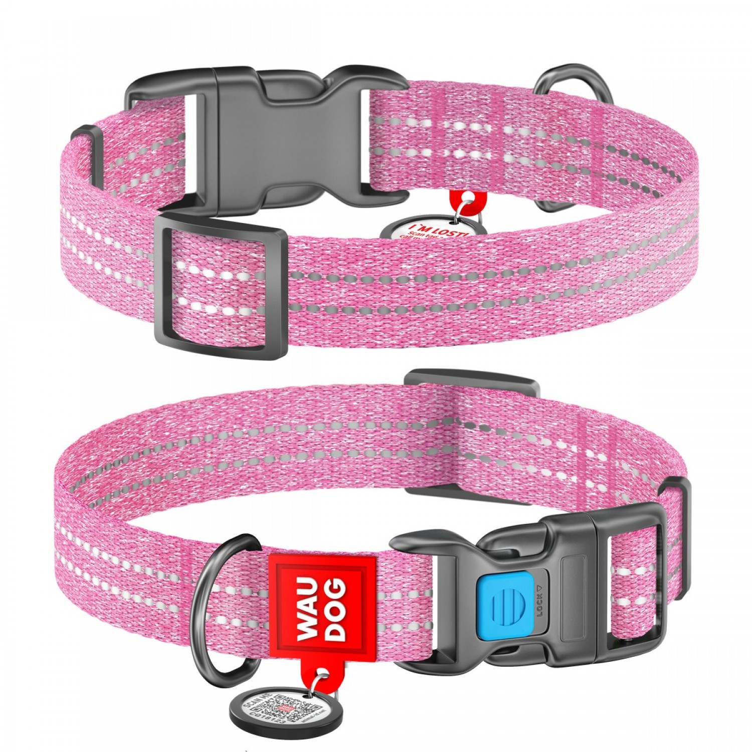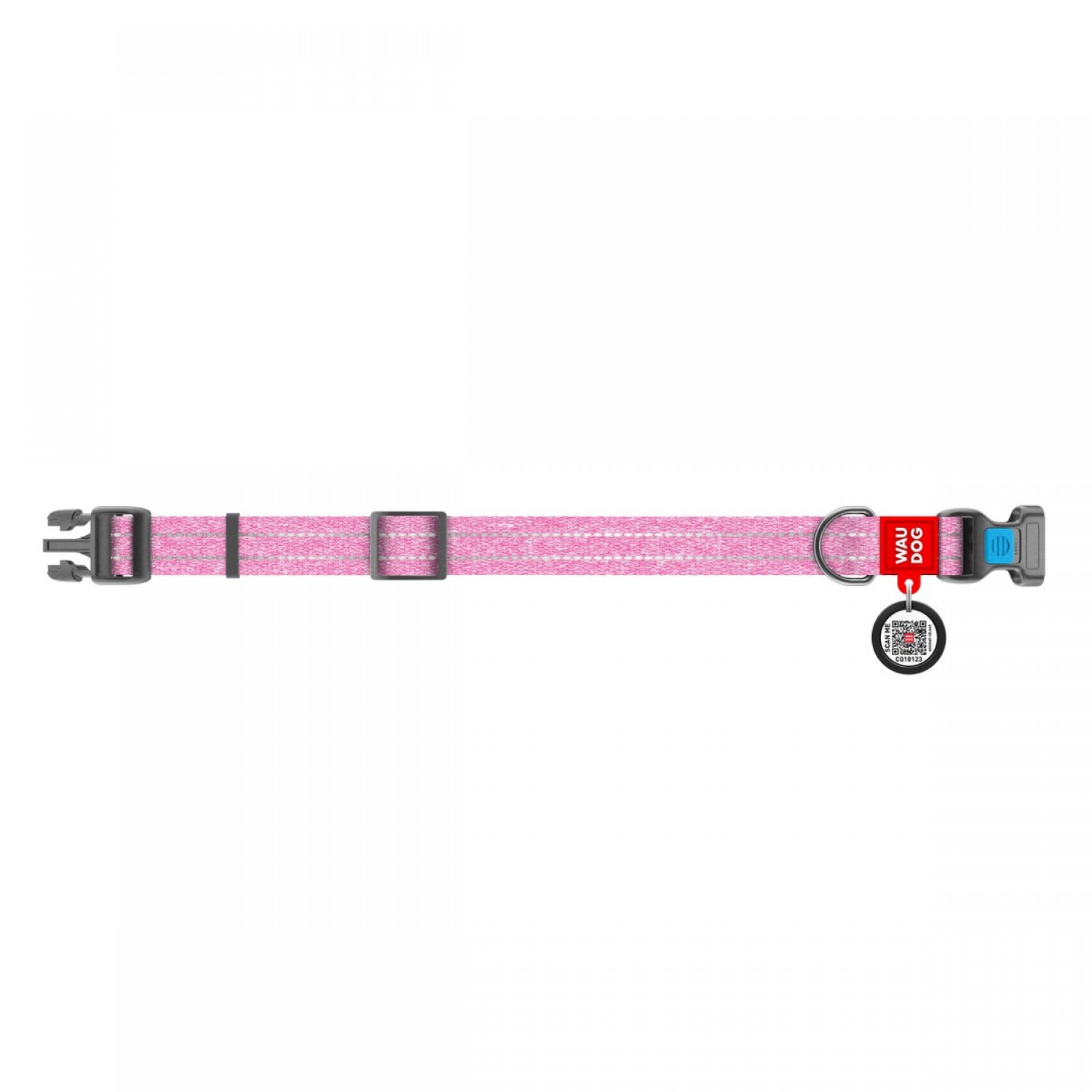 Collar WAUDOG Re-cotton светоотражающий ошейник с QR паспортом для собак (розовый).