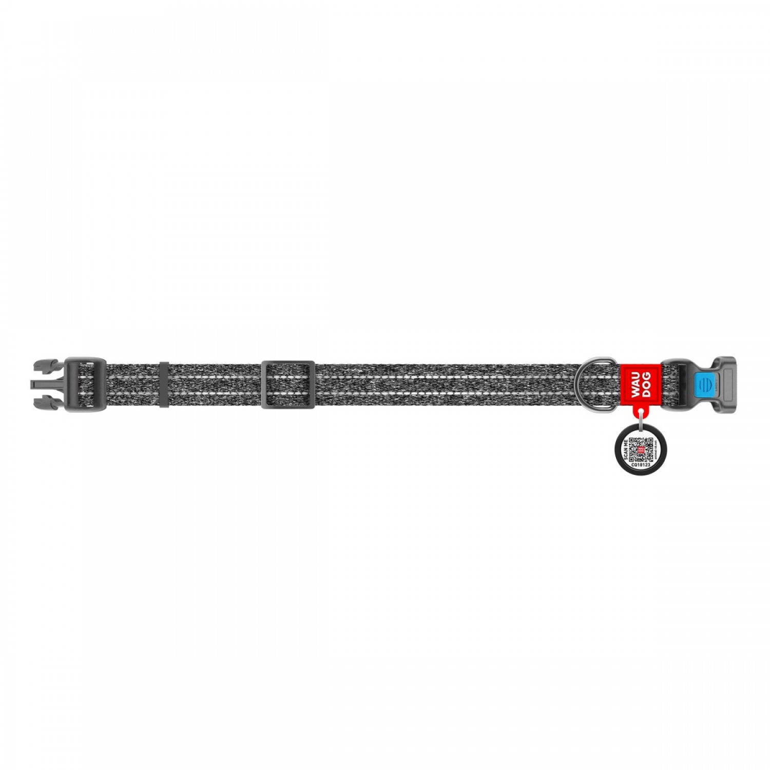 Collar WAUDOG Re-cotton светоотражающий ошейник с QR паспортом для собак (серый).