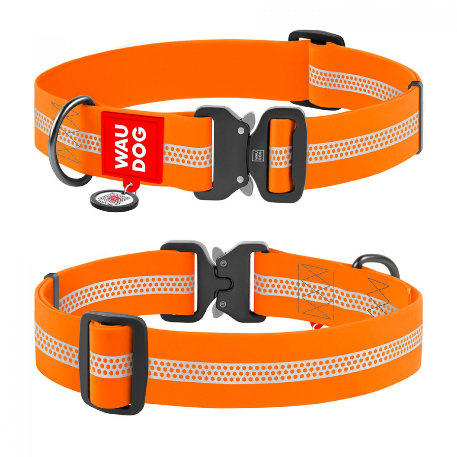 Collar WAUDOG Waterproof светоотражающий ошейник с QR паспортом и металической фурнитурой для собак.