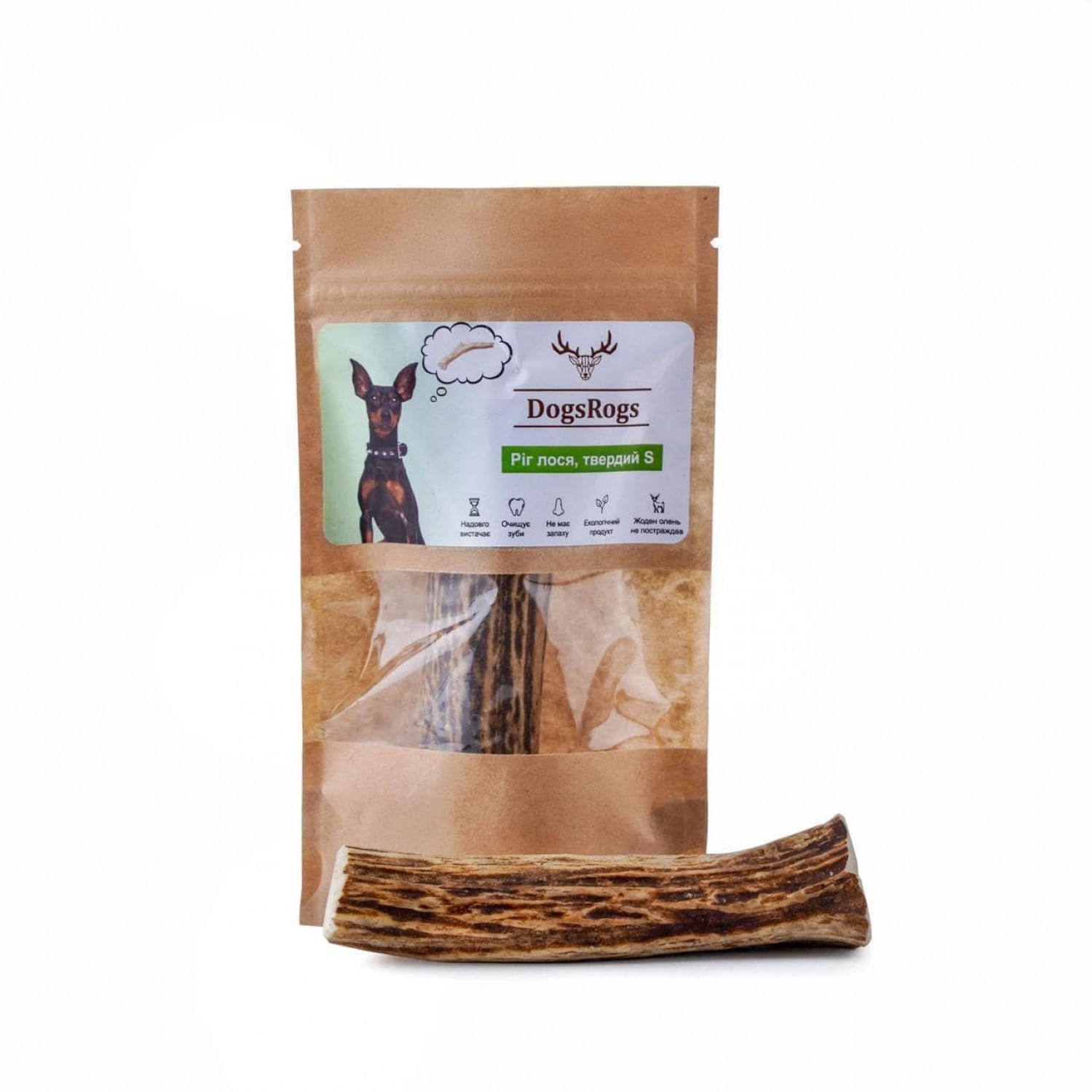 Рог лося жесткий, размер S подойдет для маленьких собак 0-8 кг с большим уровнем грызучести и щенков бойцовских пород с похожими особенностями.