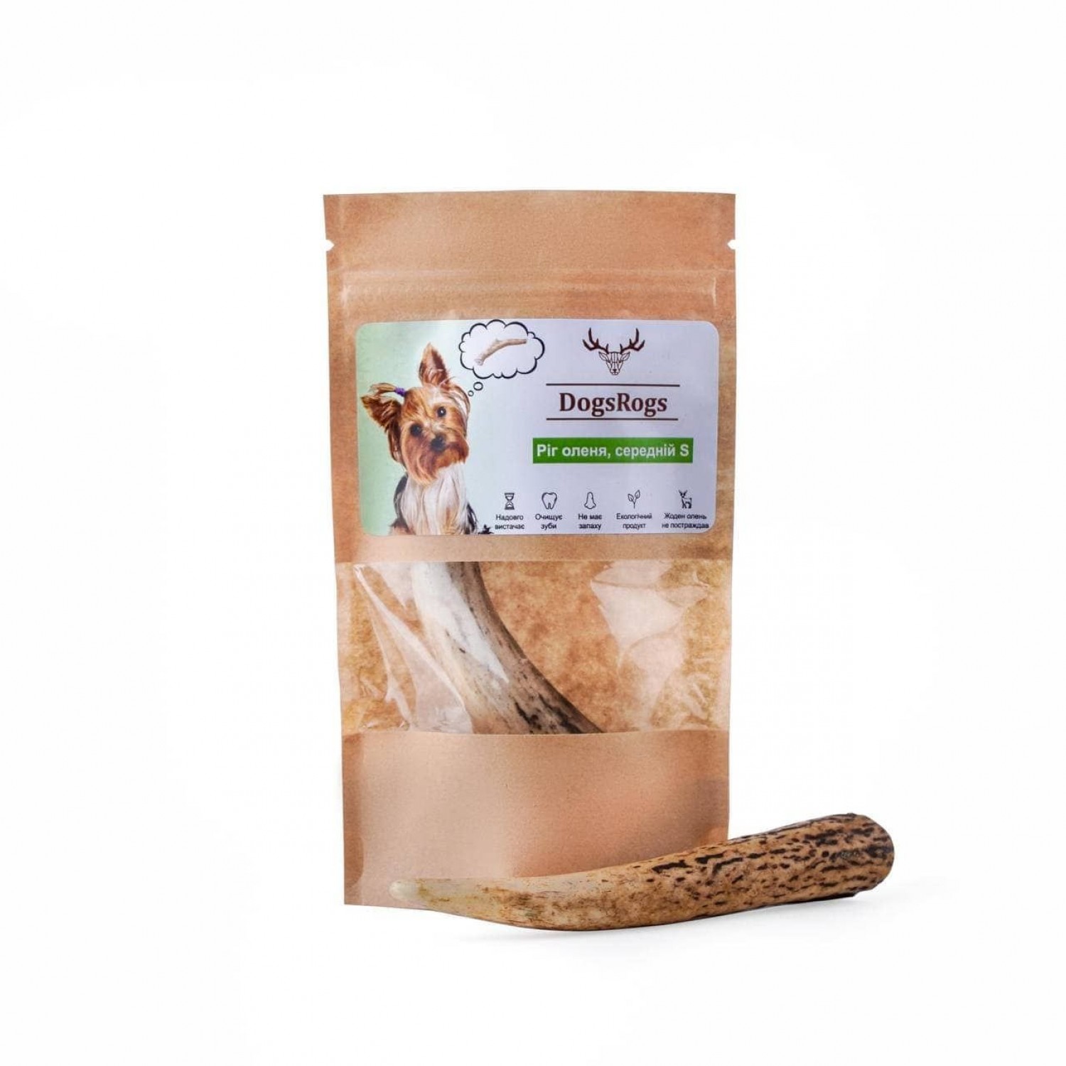 Рог оленя средней жесткости, размер S подойдет для маленькой собаки весом 0,5 – 6 кг со средним или высоким уровнем грызучести или для щенков больших пород с похожими особенностями.