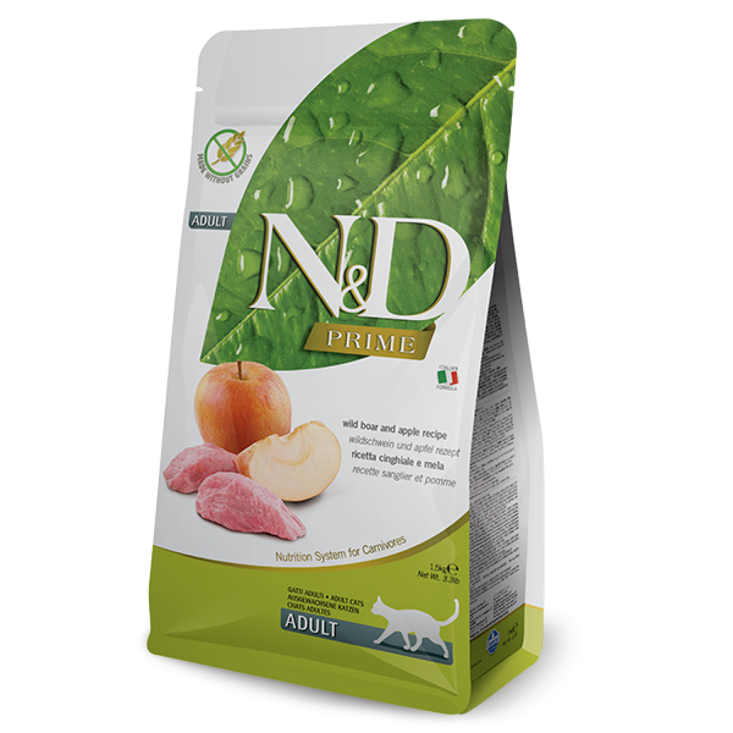 Farmina N&D беззерновой сухой корм для взрослых кошек с мясом дикого кабана и яблоком.