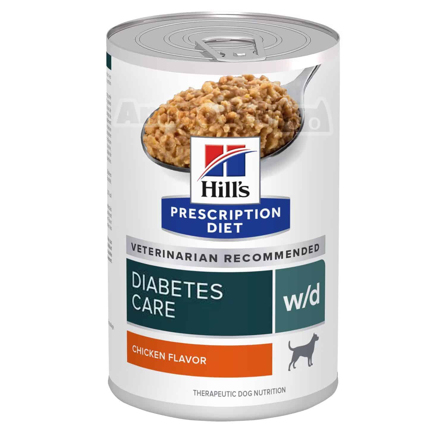Влажный корм для собак Hill's PRESCRIPTION DIET w/d с курицей - полнорационное диетическое питание для собак Hill's PRESCRIPTION DIET w/d специально разработанное диетологами и ветеринарными врачами для стабилизации уровня глюкозы в крови, поддержания работы ЖКТ благодаря добавлению к рациону клетчатки и поддержание здоровья мочевыделительной системы.