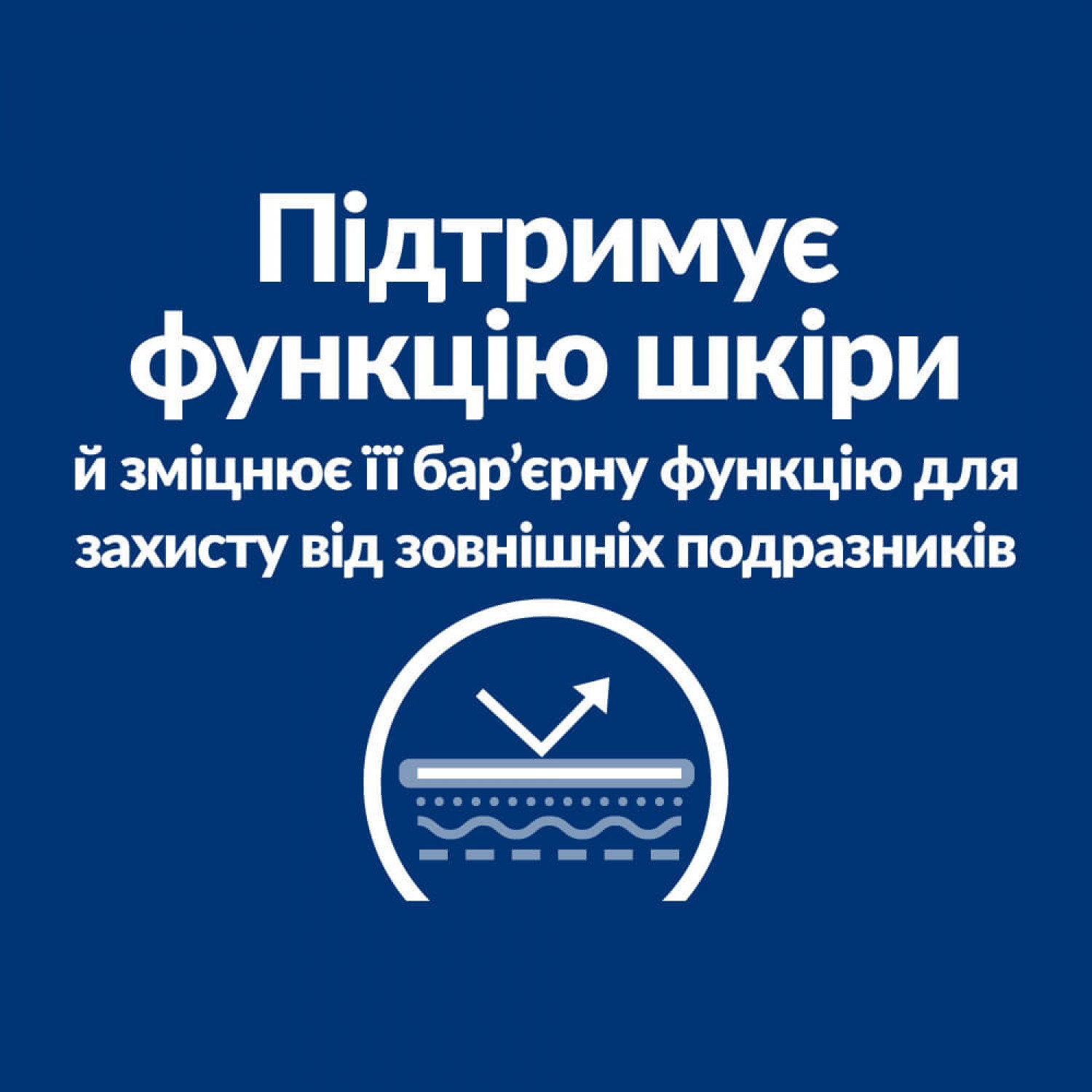 Сухой корм для собак Hill's Prescription Diet Derm Defense с курицей - полнорационное диетическое питание, в состав которого входит специальный комплекс HistaGuard. Это запатентованная смесь биоактивных веществ и фитодобавок специально разработанная диетологами и ветеринарными врачами, чтобы уменьшить признаки аллергии на внешние раздражители, сдерживая внутреннюю аллергическую реакцию и создавая барьер для таких раздражителей в будущем. Регулярное кормление этим кормом помогает нормализовать работу иммунной системы и предотвратить аллергические реакции благодаря природным источникам полифенолов.
