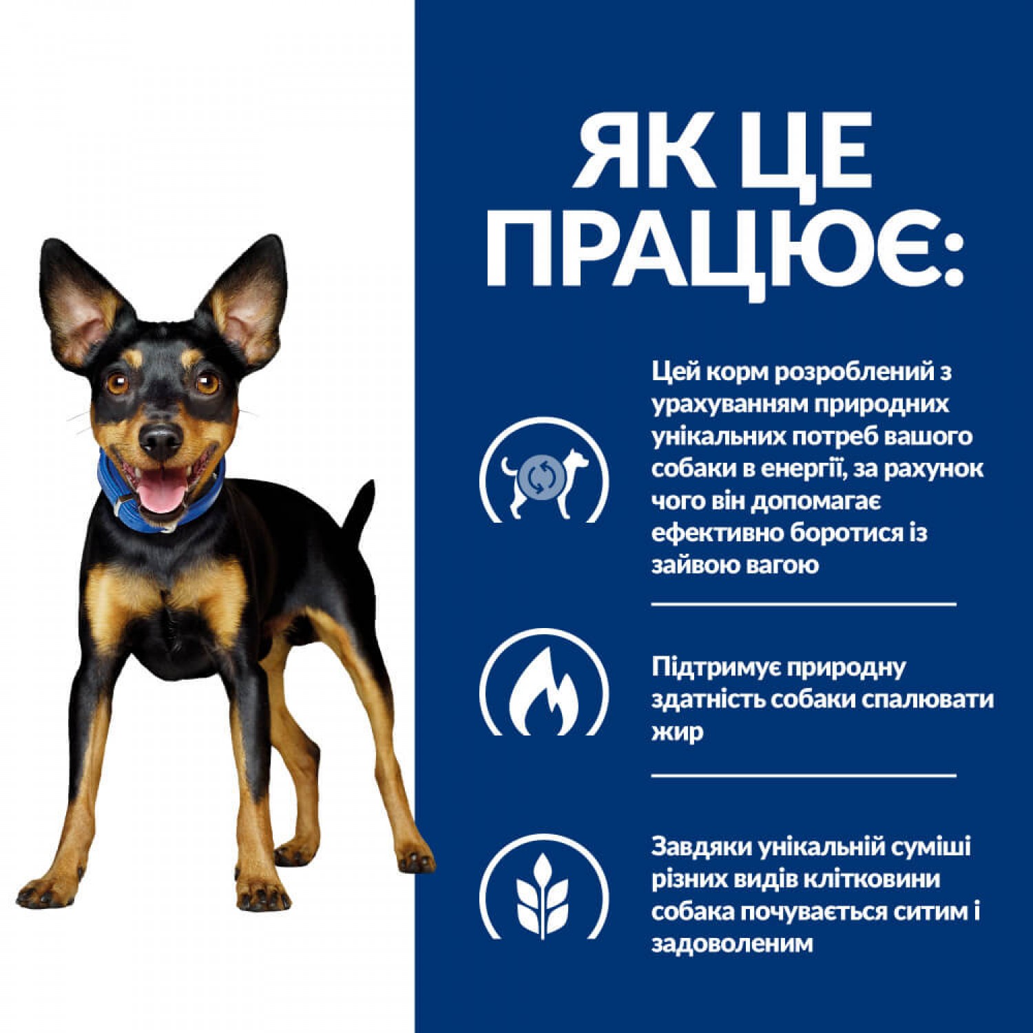 - Питание разработано с учетом естественных уникальных потребностей собаки в энергии, за счет чего помогает эффективно бороться с лишним весом.