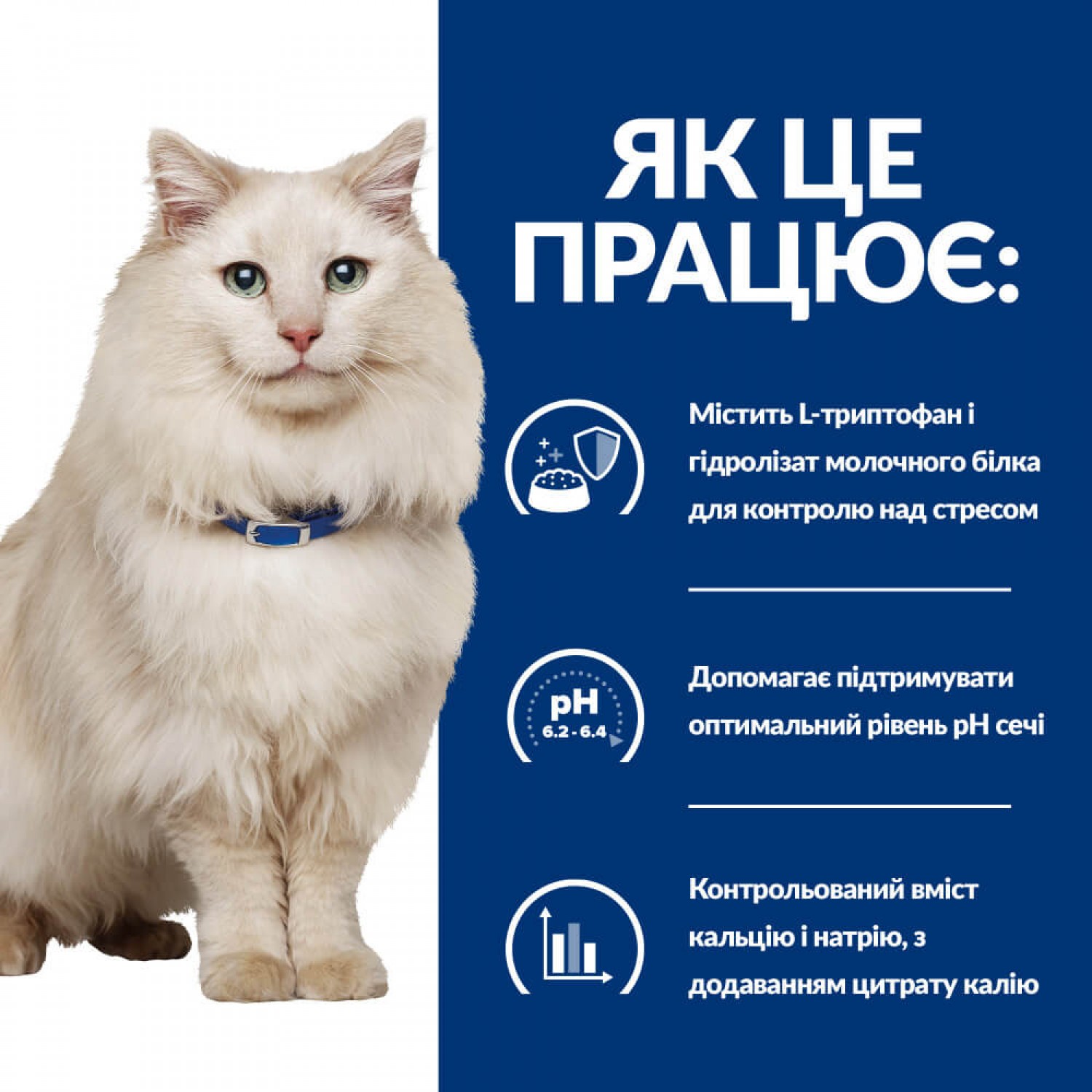 Сухой корм для кошек Hill's Prescription Diet c/d Stress – полнорационное диетическое питание, специально разработанное диетологами и ветеринарными врачами, чтобы помочь котам с заболеваниями нижних отделов мочевыводящих путей (ЗНВСШ), в частности ИЦК.