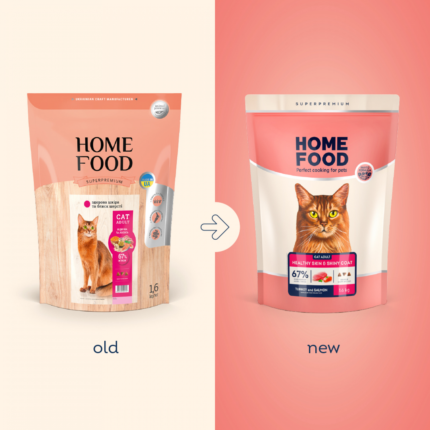 Home Food Cat Adult сухой корм для кожи и шерсти кошек "Индейка и лосось".