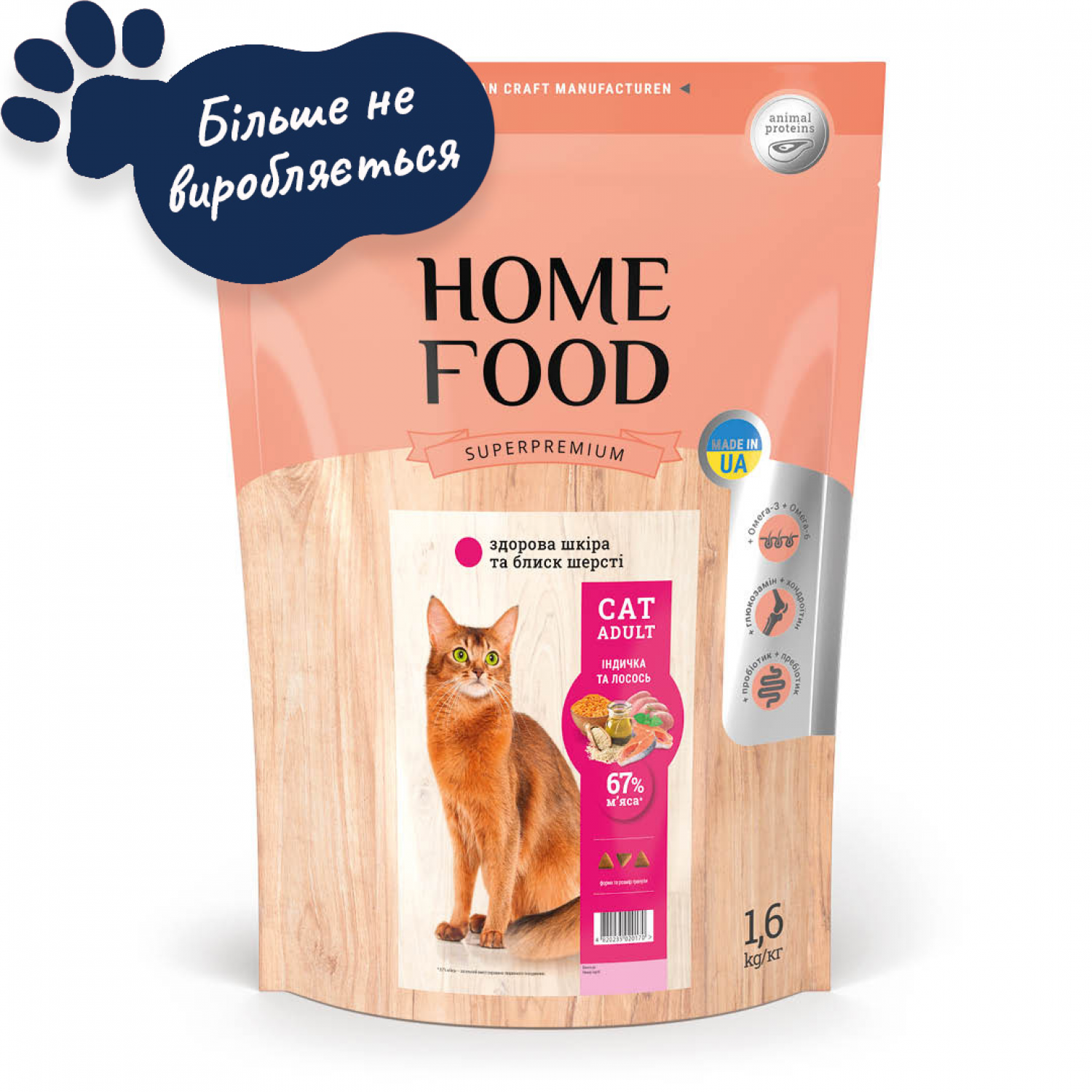 Home Food Cat Adult сухой корм для кожи и шерсти кошек "Индейка и лосось" 1,6 кг