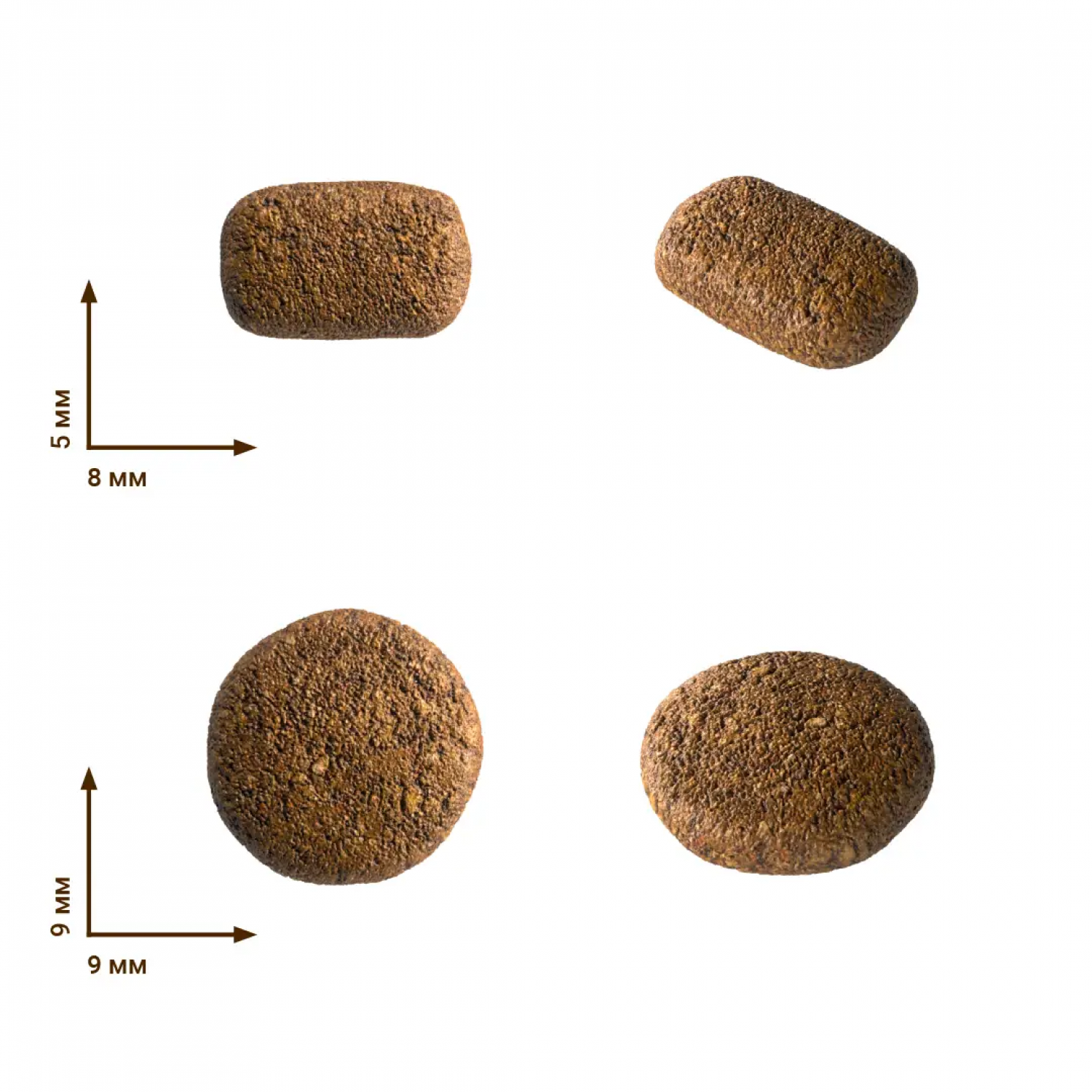 Гарантированный анализ: сырой белок - 33 %, сырые жиры - 12 %, сырая клетчатка - 4,4 %, сырая зола - 5,1 %, влажность 10 %, Омега-3 жирные кислоты - 1,03 %, Омега-6 жирные кислоты - 2,4 %, кальций - 0,95 %, фосфор - 0,85 %.