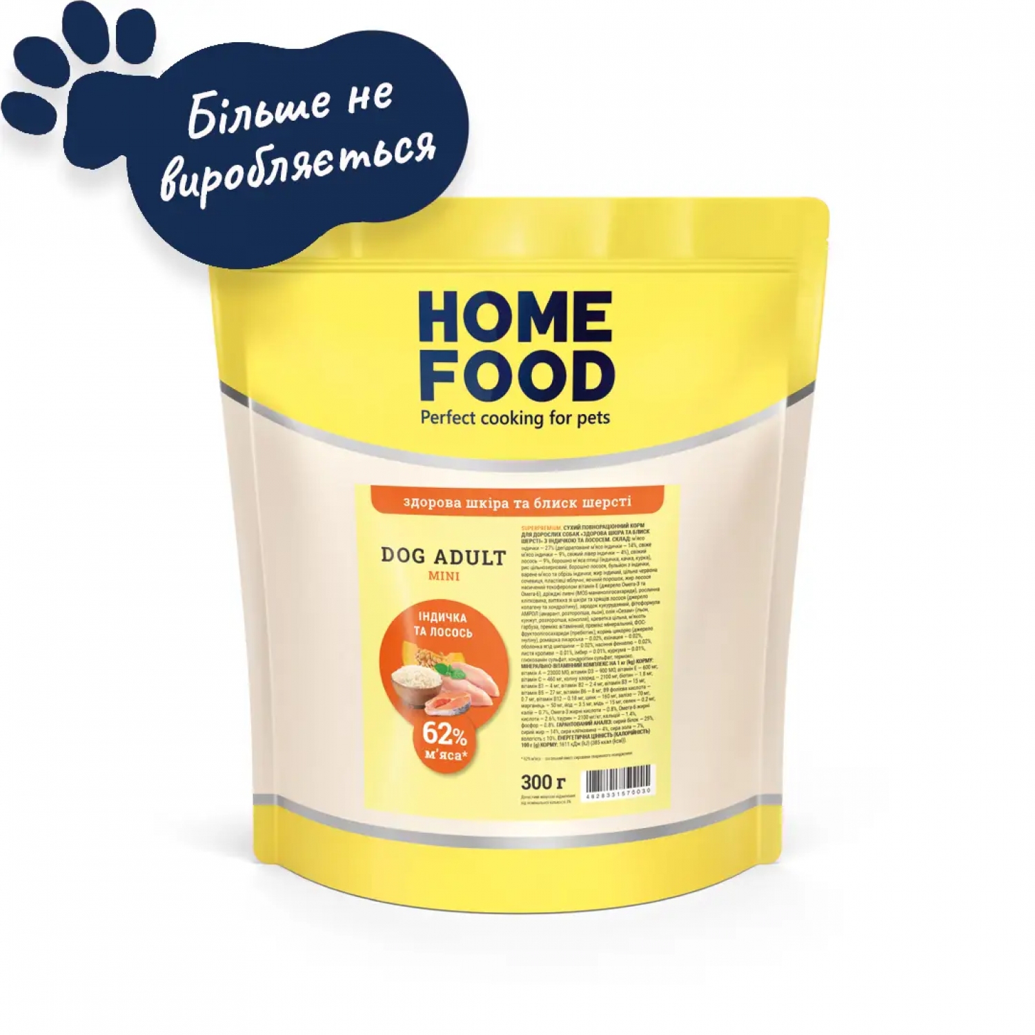 Home Food Dog Adult Mini ​cухой корм для кожи и шерсти собак мелких​ пород "Индейка и лосось" 0,3 кг