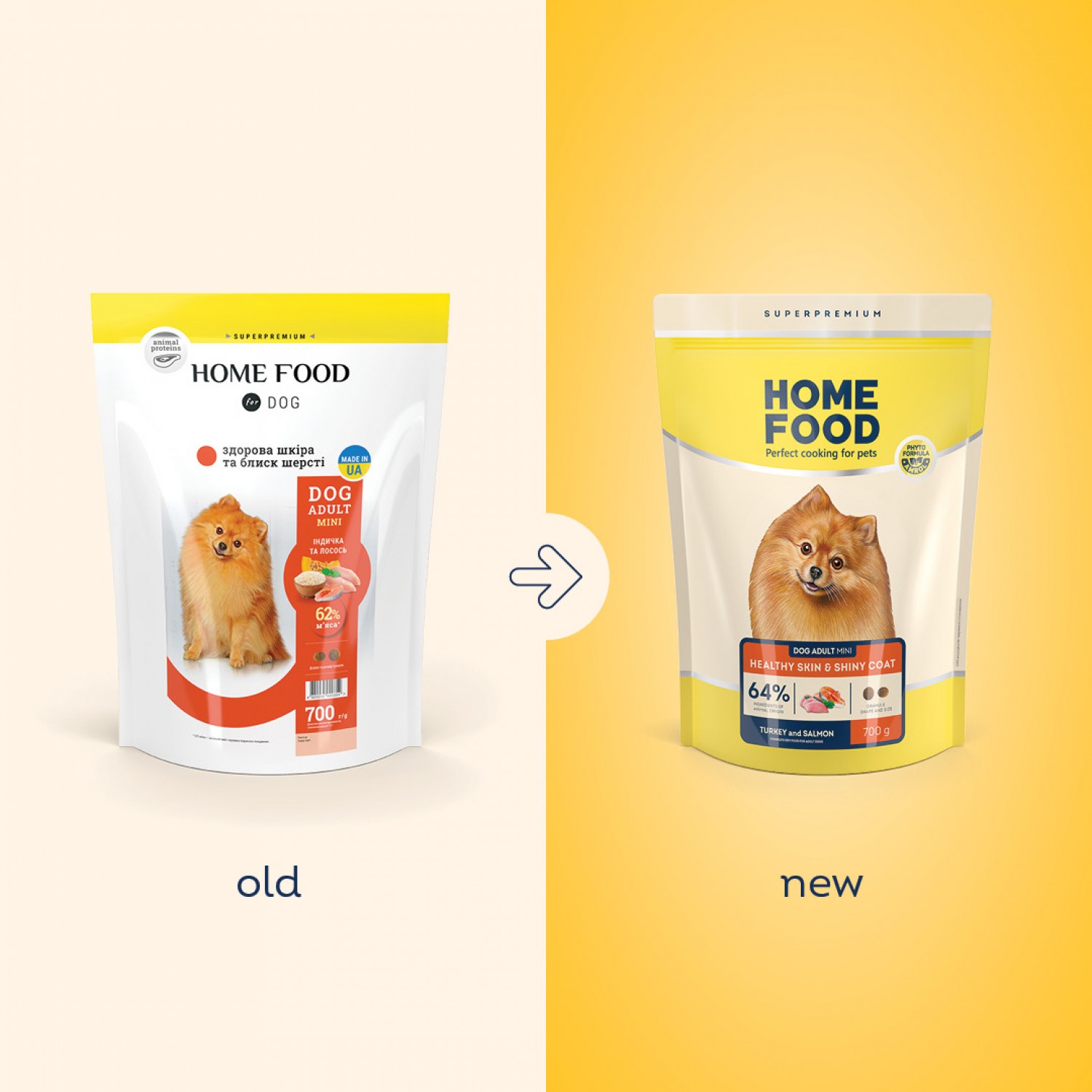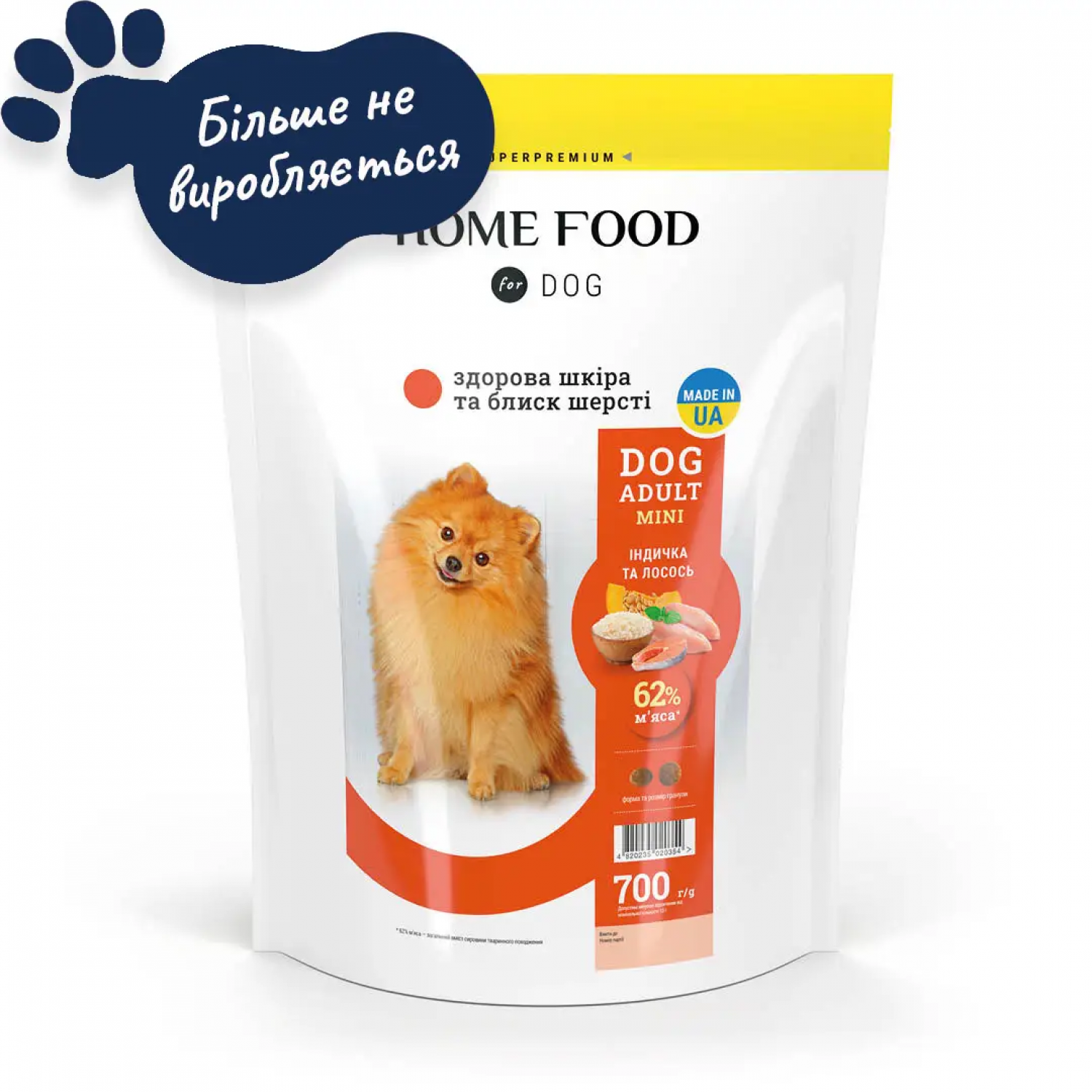Home Food Dog Adult Mini ​cухой корм для кожи и шерсти собак мелких​ пород "Индейка и лосось" 0,7 кг