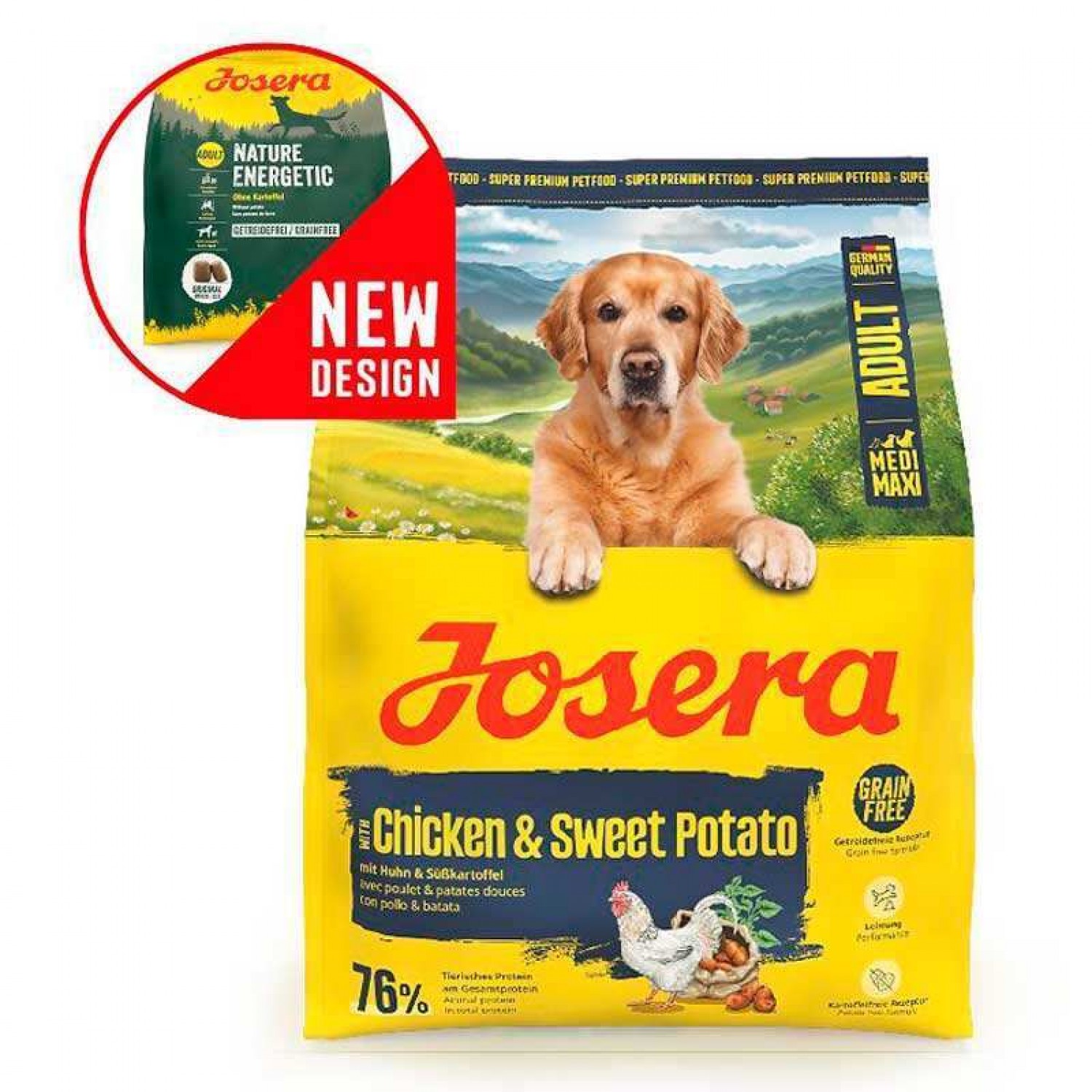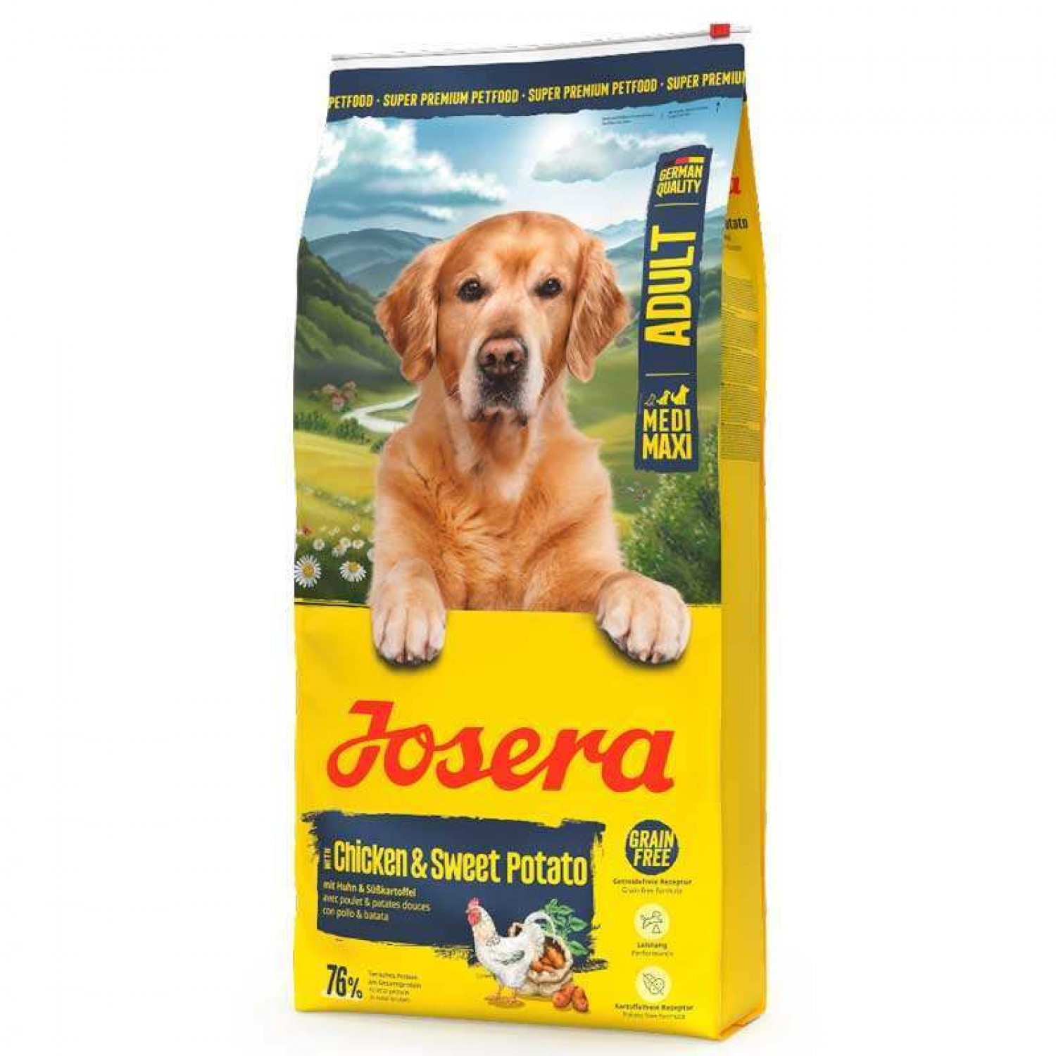 Josera Medi/Maxi Adult Chicken & Sweet Potato - полноценный беззерновой сухой корм с курицей и бататом для взрослых активных собак средних и крупных пород. Это сбалансированный рацион на основе мяса домашней птицы с оптимальным содержанием всех необходимых витаминов, минералов и питательных веществ.