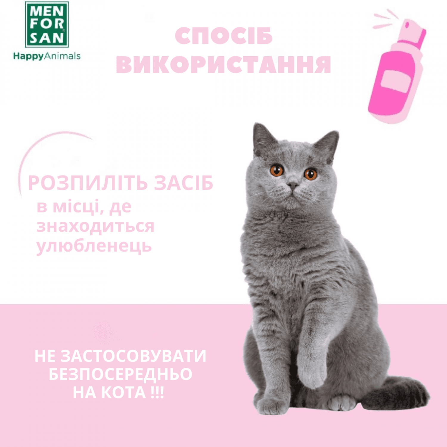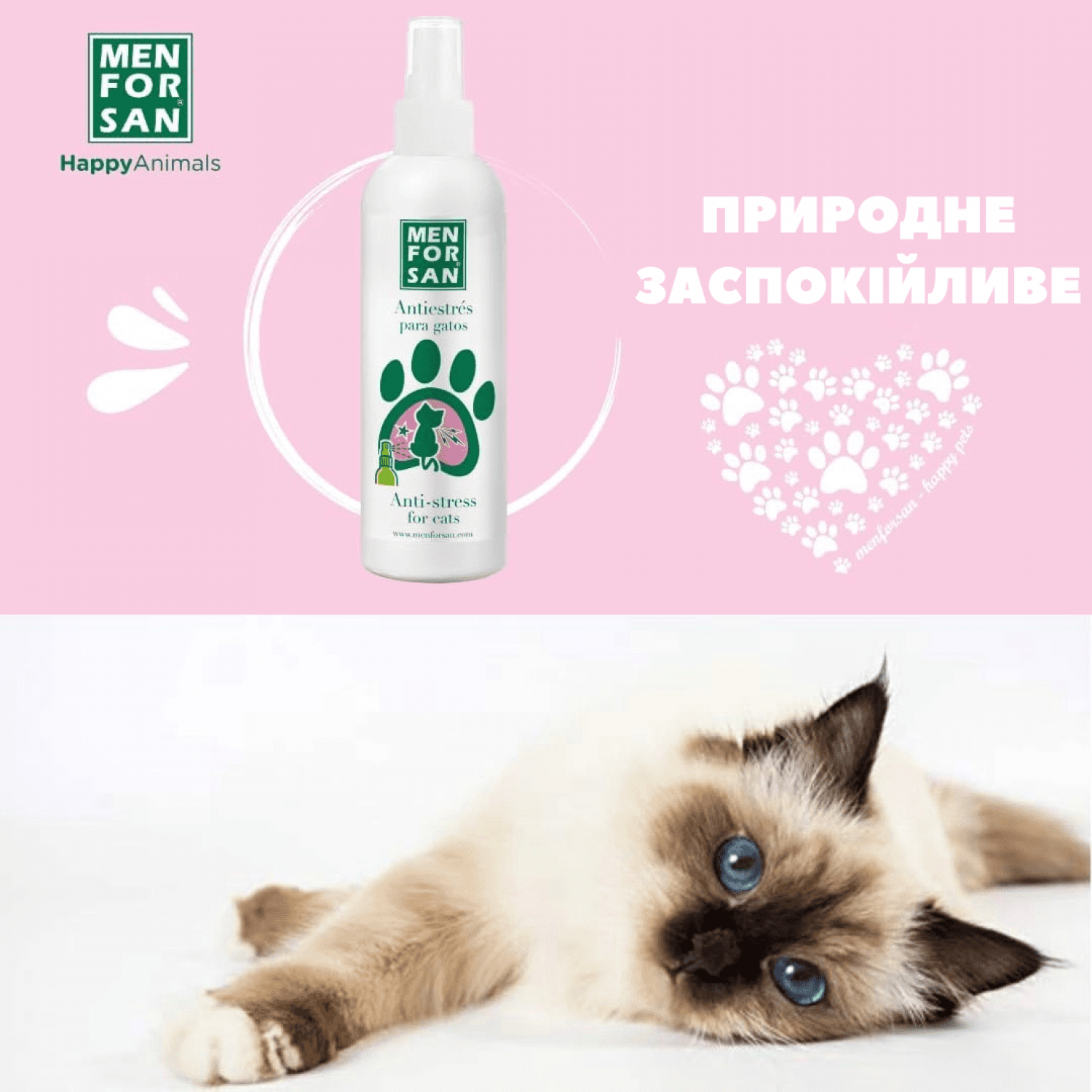 Натуральный спрей для кошек для уменьшения симптомов стресса. Помогает снизить и уменьшить признаки стресса и тревоги, вызванные разлукой, слишком долгим пребыванием дома, периодом жары, фейерверками, путешествиями, новым домашним животным дома, новым домом, изменения среды, громкие звуки, визит к ветеринару, потеря компаньона.