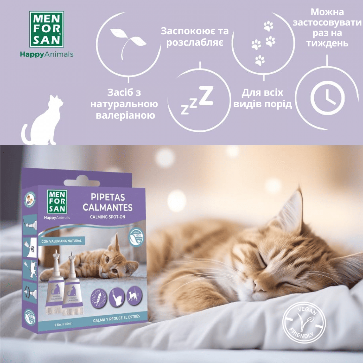 Капли помогут чувствовать себя животным спокойнее во время стрессовых моментов: визитов к ветеринару, громким звукам, поездкам на автомобиле, авиаперелетам, появлению новых членов семьи и другим раздражителям.