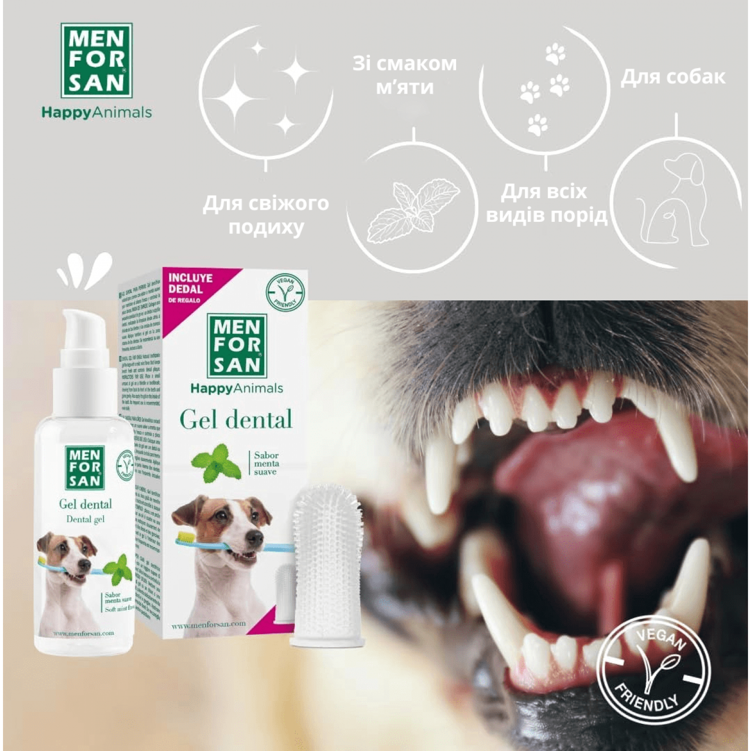 Натуральный дентал гель для чистки зубов собак и кошек с мягким ароматом мяты, который сохраняет свежесть дыхания и контролирует зубной налет. Дарим наперсток вместе с зубным гелем для легкой чистки!