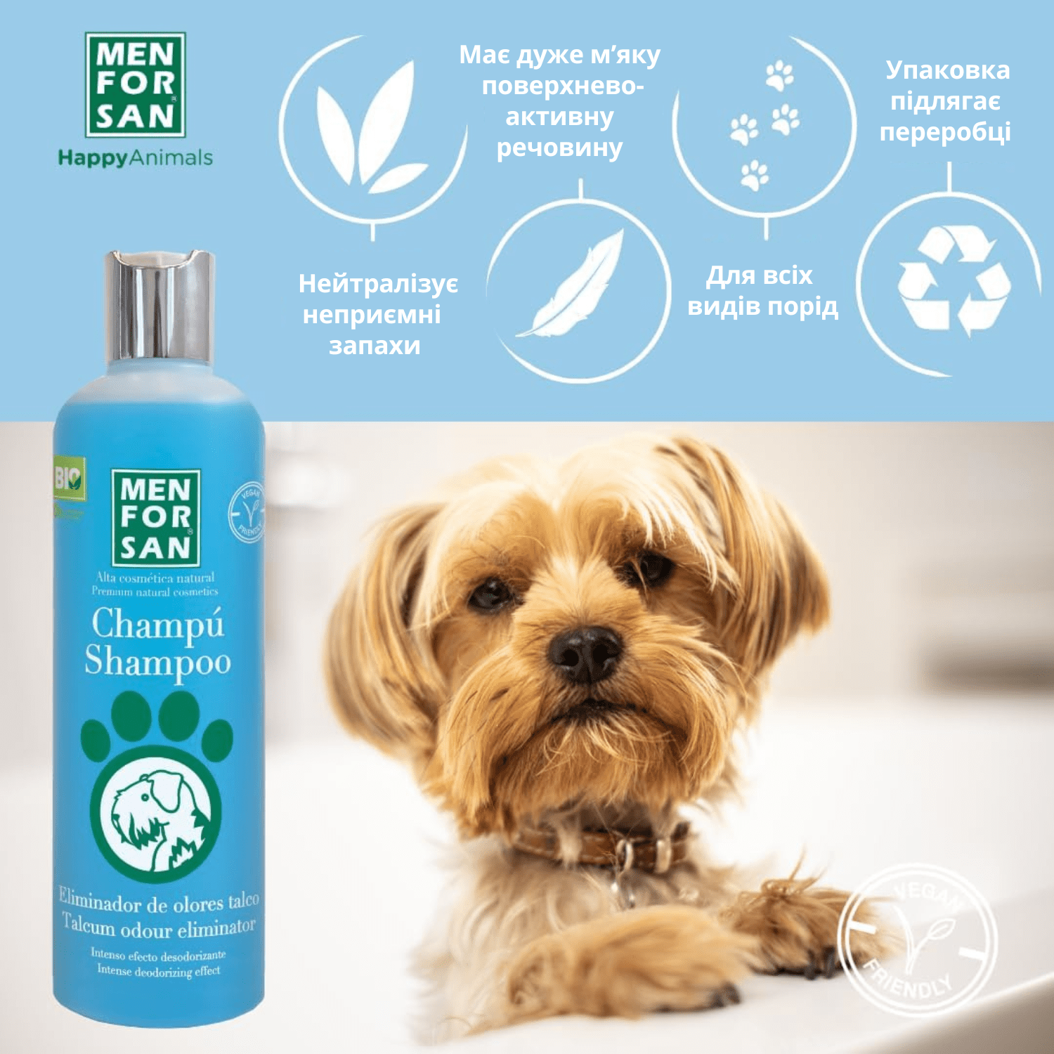 Высококачественный шампунь, который нейтрализует и устраняет органические молекулы, присутствующие в шерсти домашних животных, вызывающих неприятный запах, а также обеспечивает фантастический запах талька.