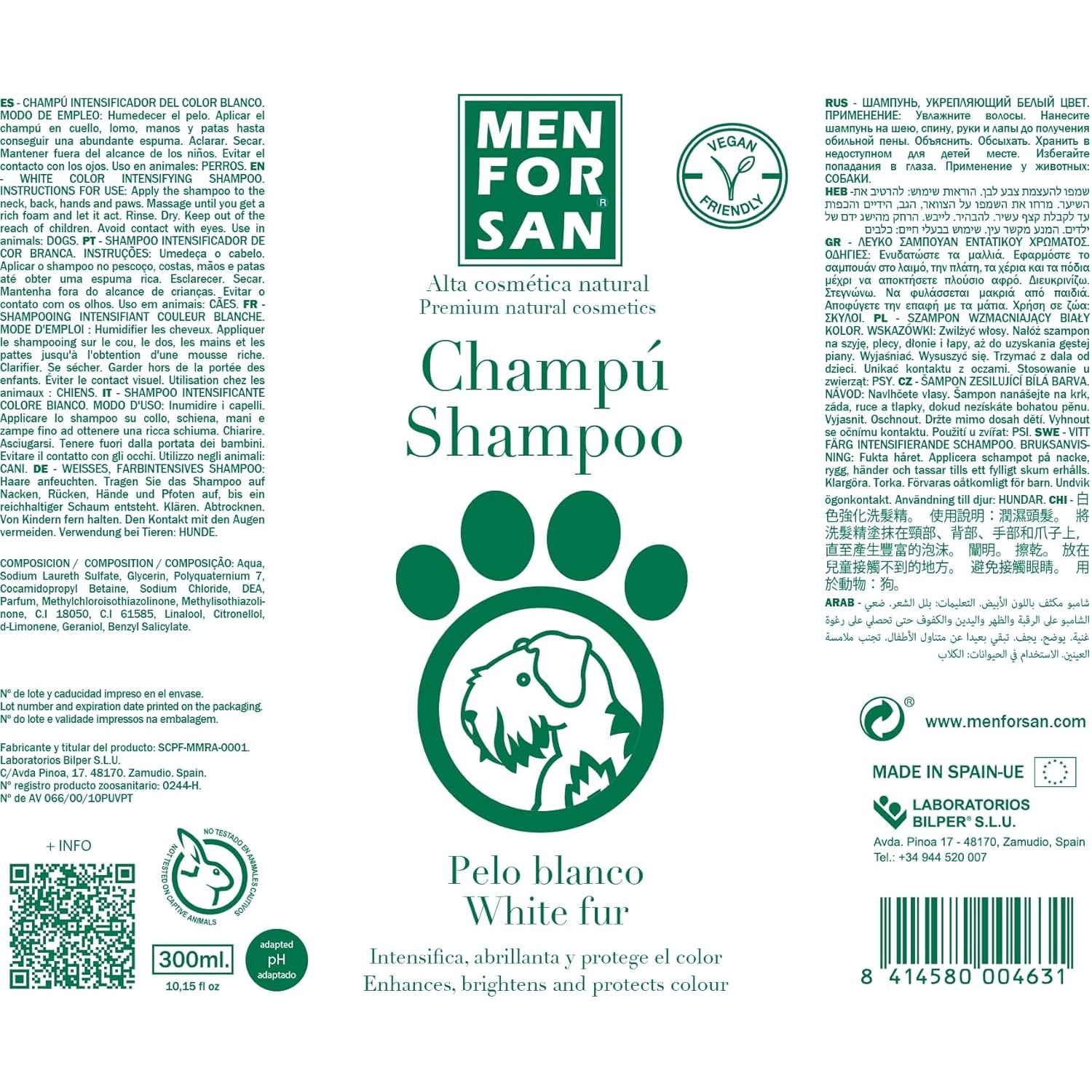 Натуральный шампунь, высокого качества для собак с белым и светлой шерстью с фруктовым ароматом. Этот шампунь удаляет и предотвращает появление непривлекательных серых и желтых пятен на белой шерсти, усиливая блеск и натуральный цвет естественным путем. Шампунь увлажняет и восстанавливает здоровый и естественный вид шерсти.