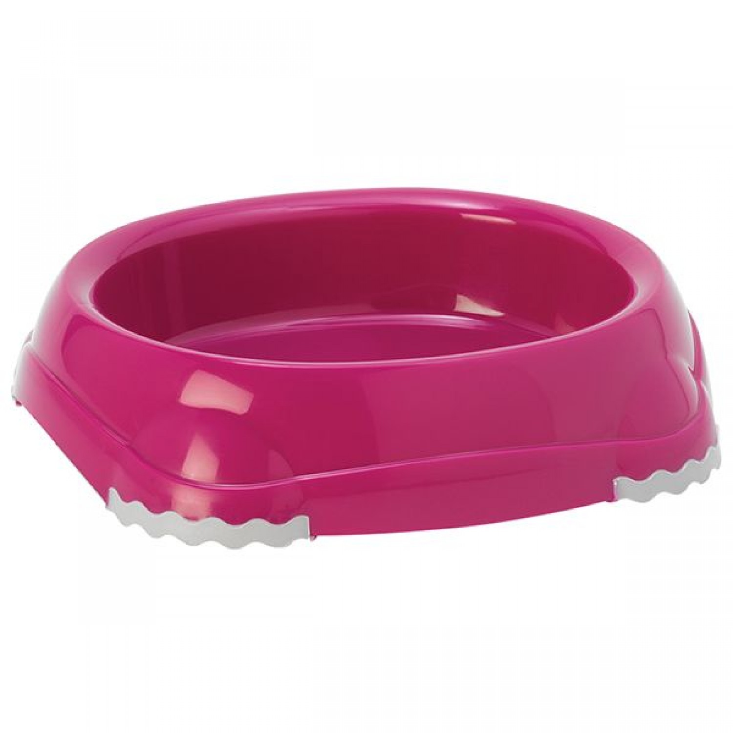 Миска для корма и воды из полированного пластика для кошек. Ножки миски имеют резиновые накладки для предотвращения скольжения по полу. Качественный пластик не гнется, не ломается, не впитывает запахи, миска легко моется, имеет длительный срок эксплуатации.