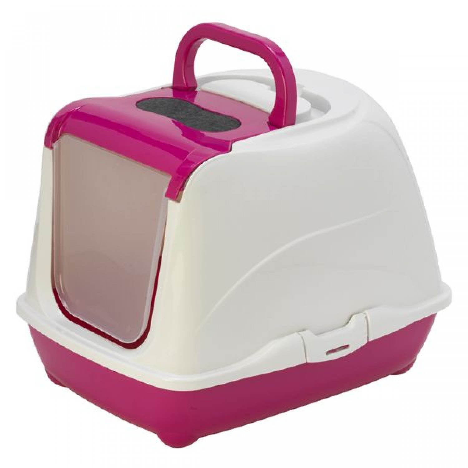 Moderna закрытый туалет для кошек с откидной крышкой (ярко-розовый/белый).