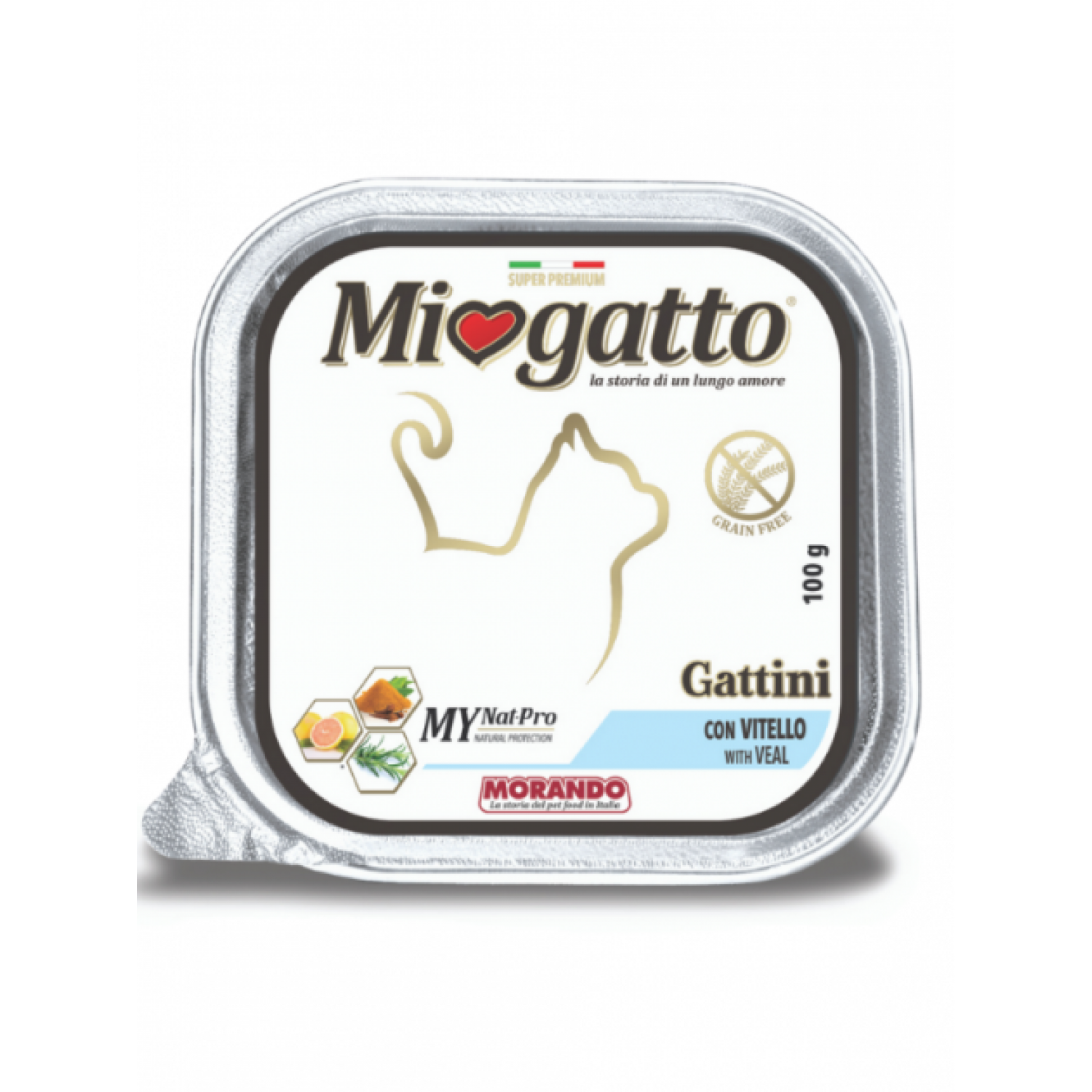 - При изготовлении Miogatto Gattini не используются замороженные продукты. Только самое свежее мясо, которое обрабатывается в течение 24 часов с момента производства! Это позволяет сохранить большее количество витаминов и питательную ценность.
