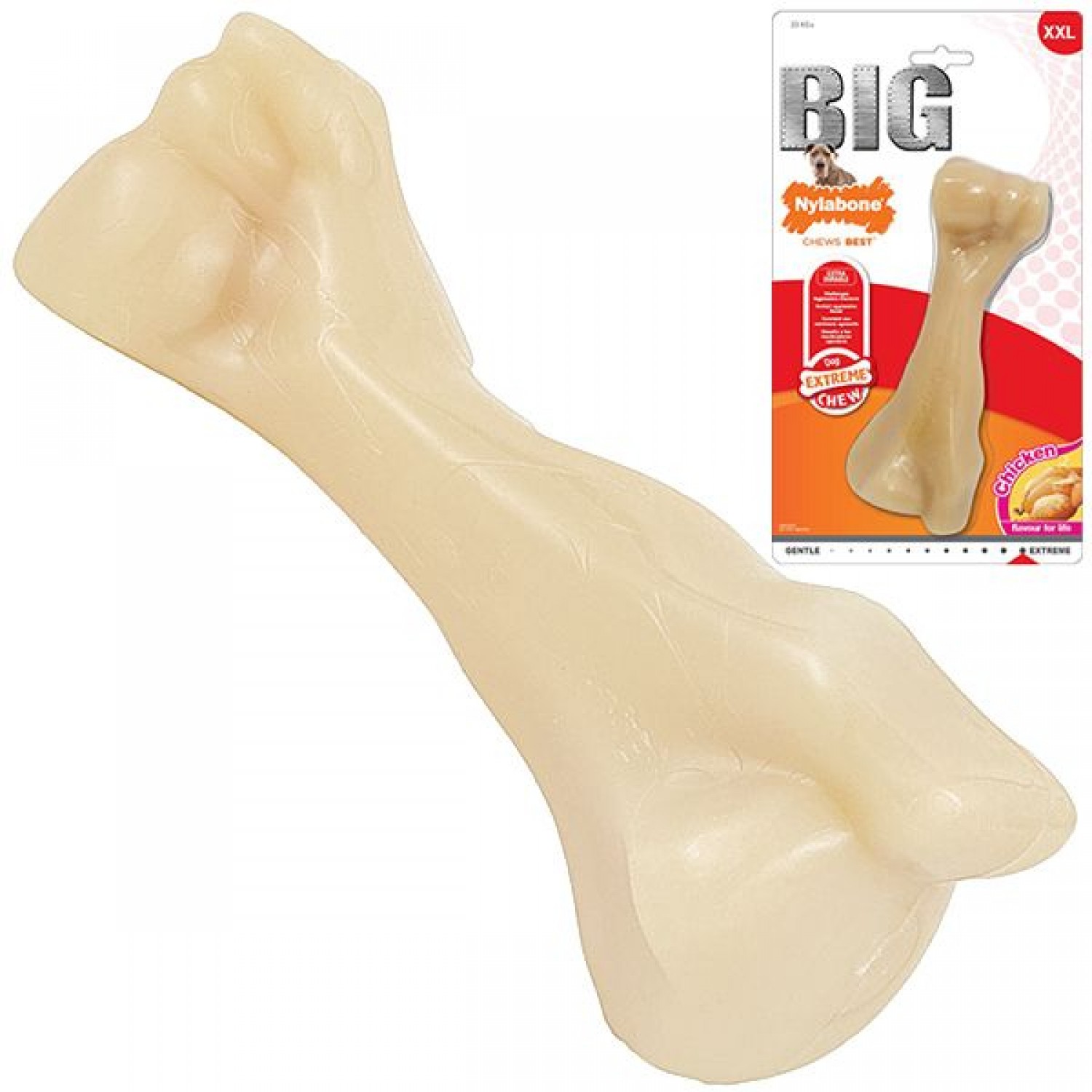 - Если вы какое-то время не давали Nylabone Big Bone своему питомцу, просто немного потрите поверхность чем-то жестким, чтобы «оживить» вкус курицы.