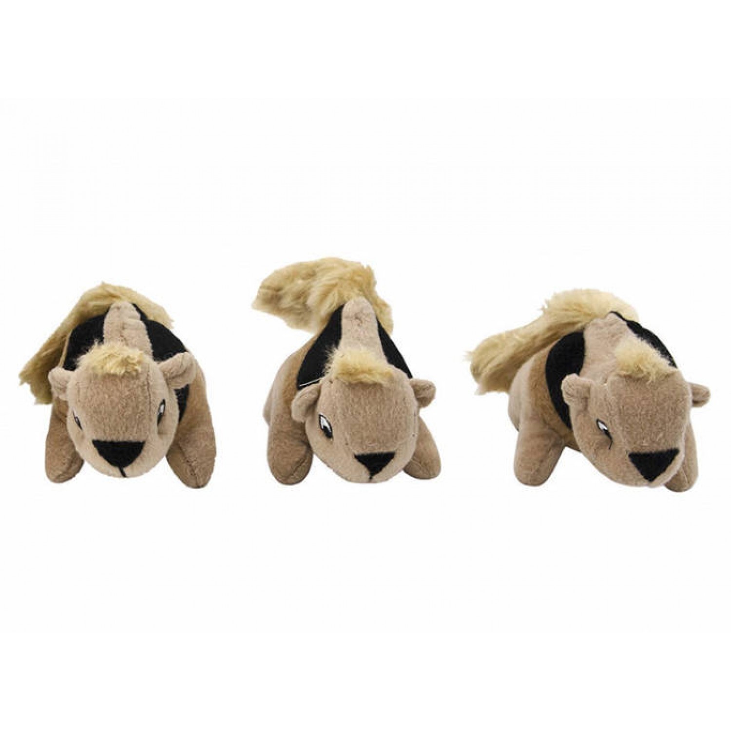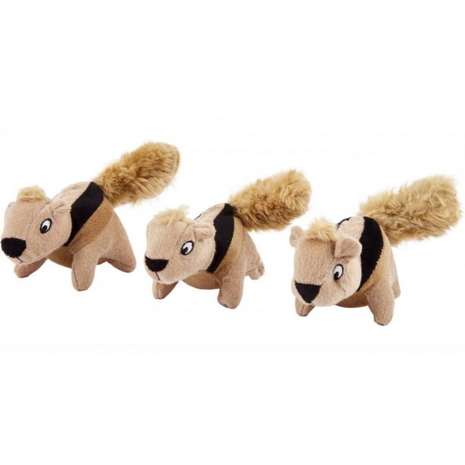 Играть с этими невероятными плюшевыми белочками-пищалками всегда весело, а еще, их можно спрятать в ствол плюшевого дерева для увлекательных игр в тайники. Белочки изготовлены из мягкой ткани, нежной к чувствительным деснам щенков и стареющих питомцев, но достаточно прочной, чтобы выдержать множество игровых сеансов. Каждая из трех белочек содержит фирменную непобедимую пищалку, которая будет пищать даже если ее прокусить.