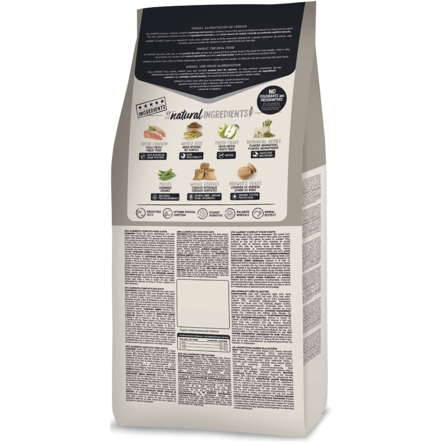 • Корм Ownat Classic Light создан для ежедневного полнорационного питания взрослых котов, склонных к набору лишнего веса.
