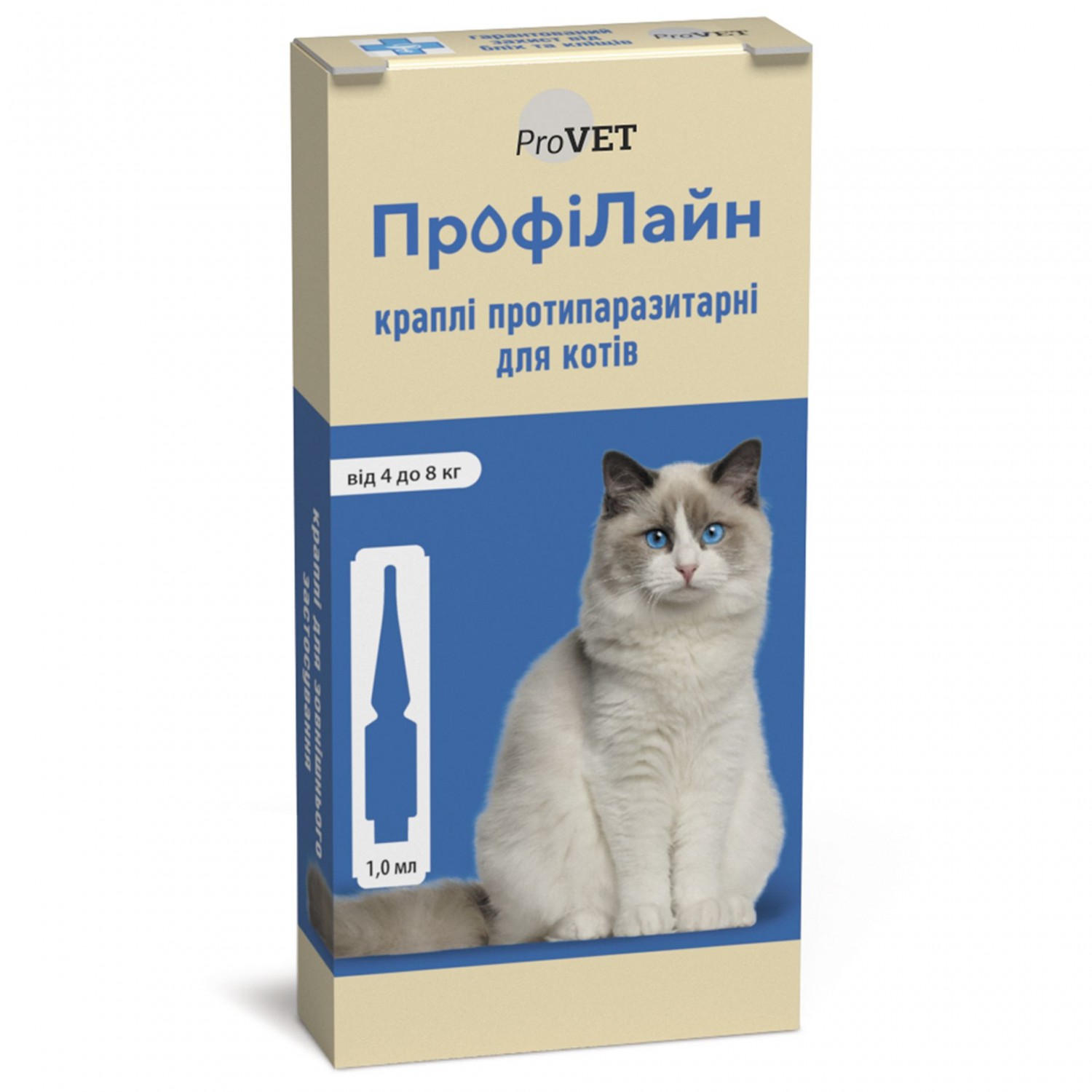 ProVET Профилайн капли противопаразитарные для котов от 4 до 8 кг (4 пипетки по 1,0 мл)