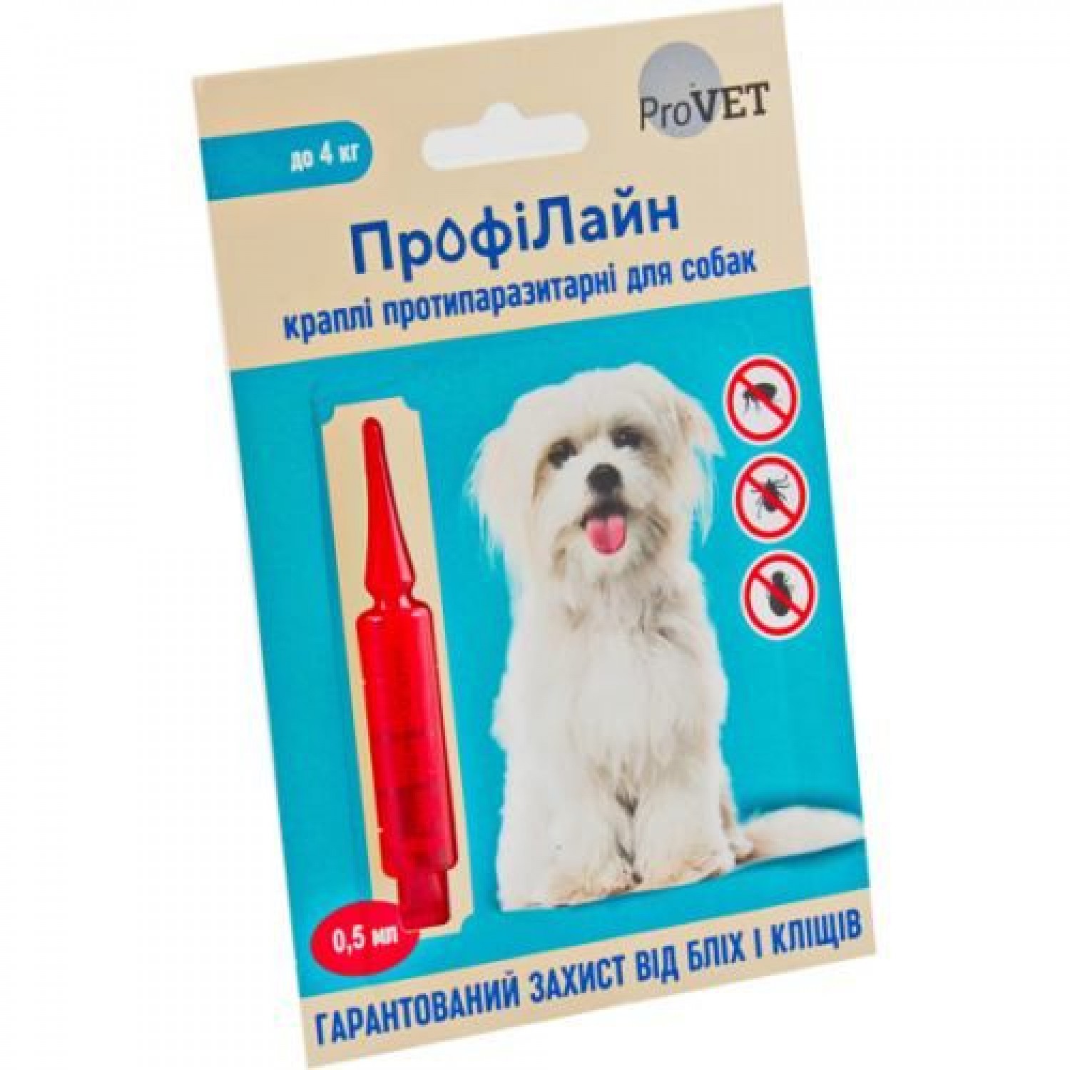 ProVet ПрофиЛайн противопаразитарные капли для собак до 4кг от блох и клещей (1 пипетка 0,5мл)