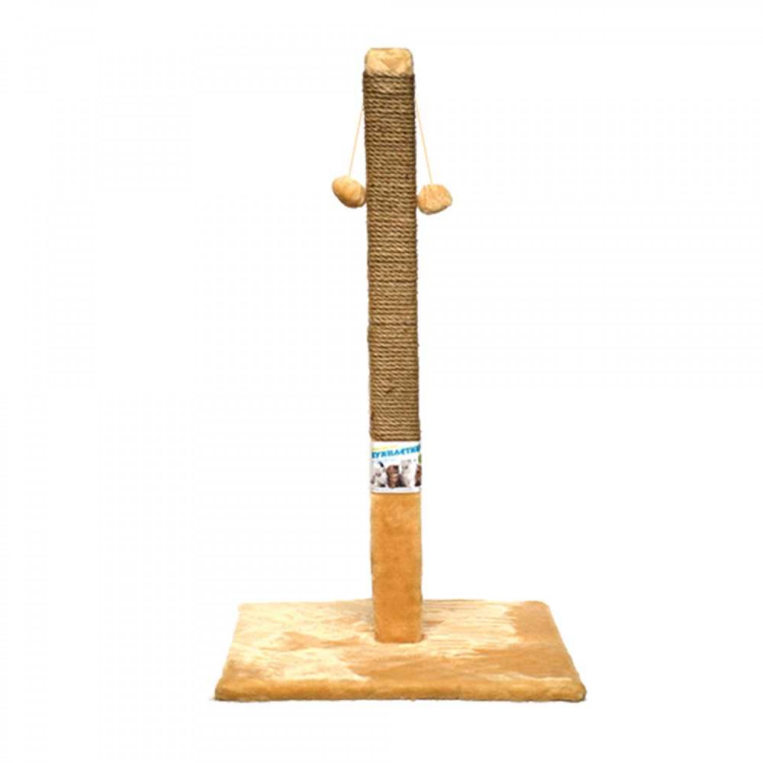 Пухнастики когтеточка для котов большой столбик на подставке (джут) бежевая.