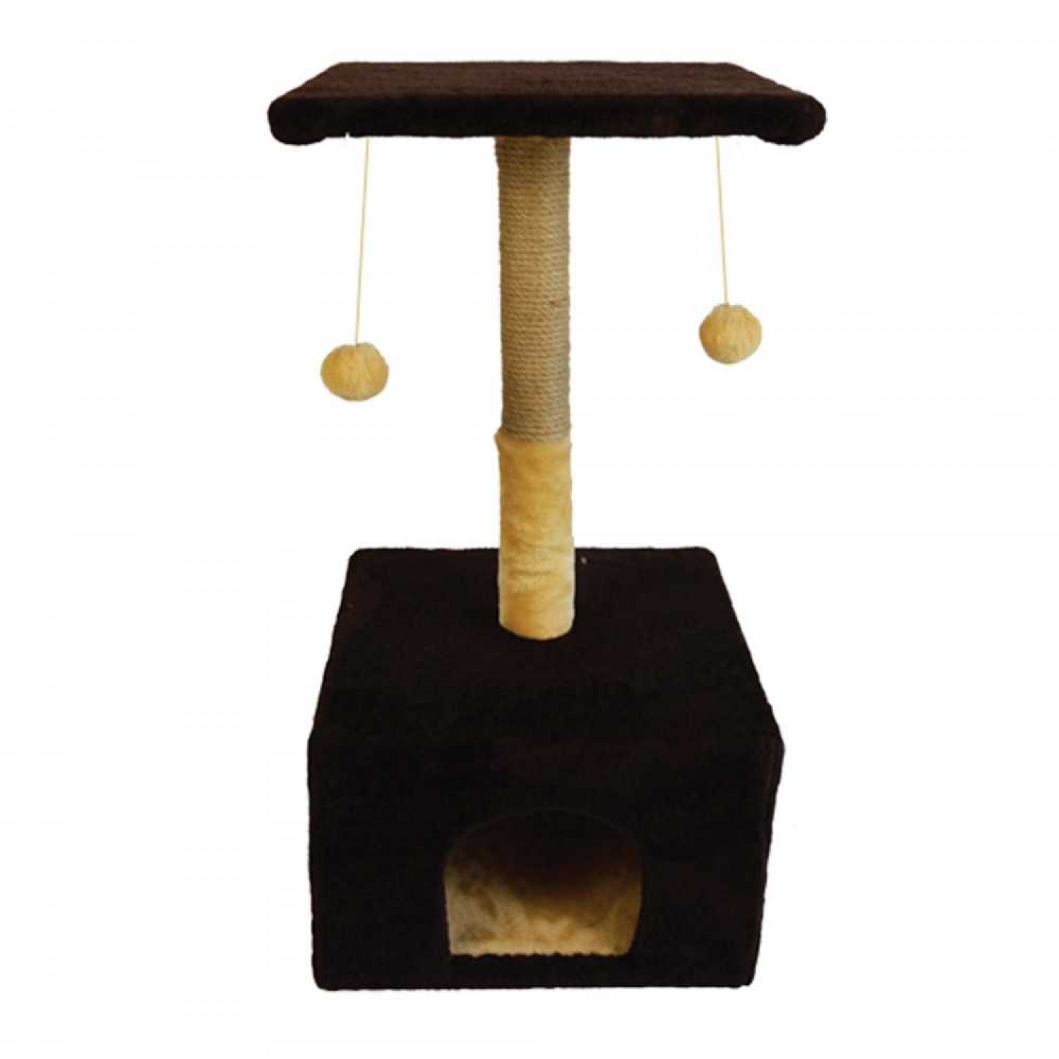 Пухнастики когтеточка для котов домик с полкой (джут) шоколад.
