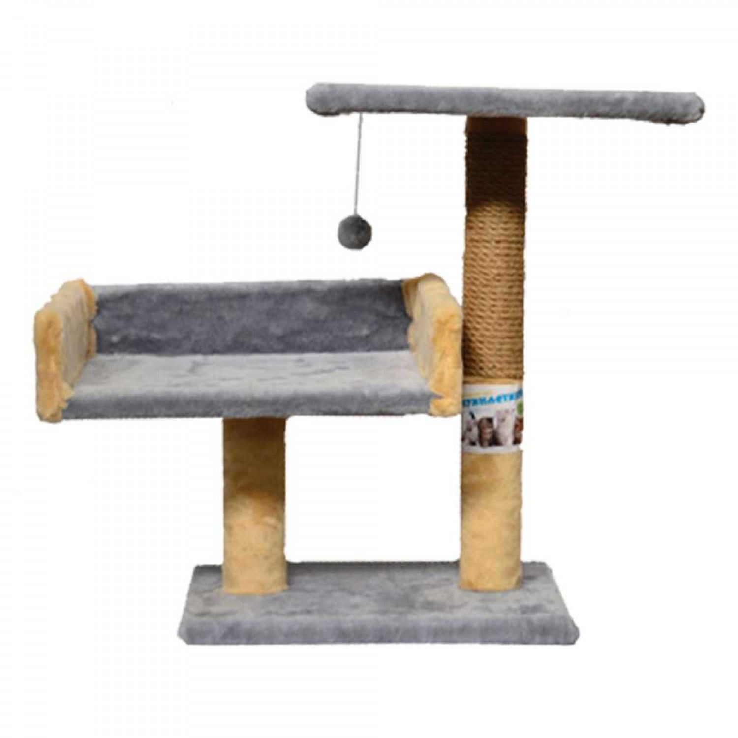 Пухнастики когтеточка для котов с диваном и полкой (джут) серая с бежевым.