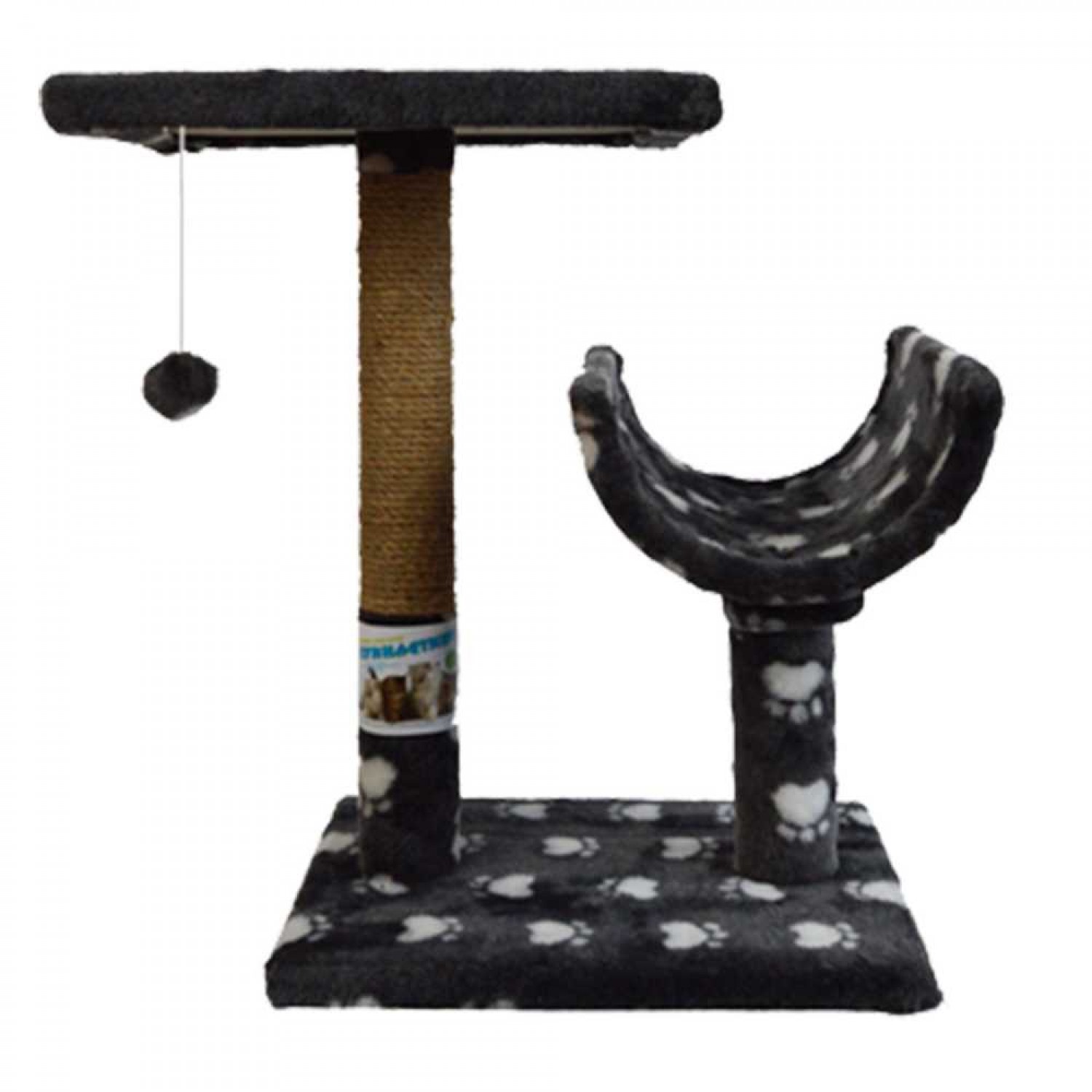 Пухнастики когтеточка для котов с полкой и полутуннелем (джут) серая с лапками.