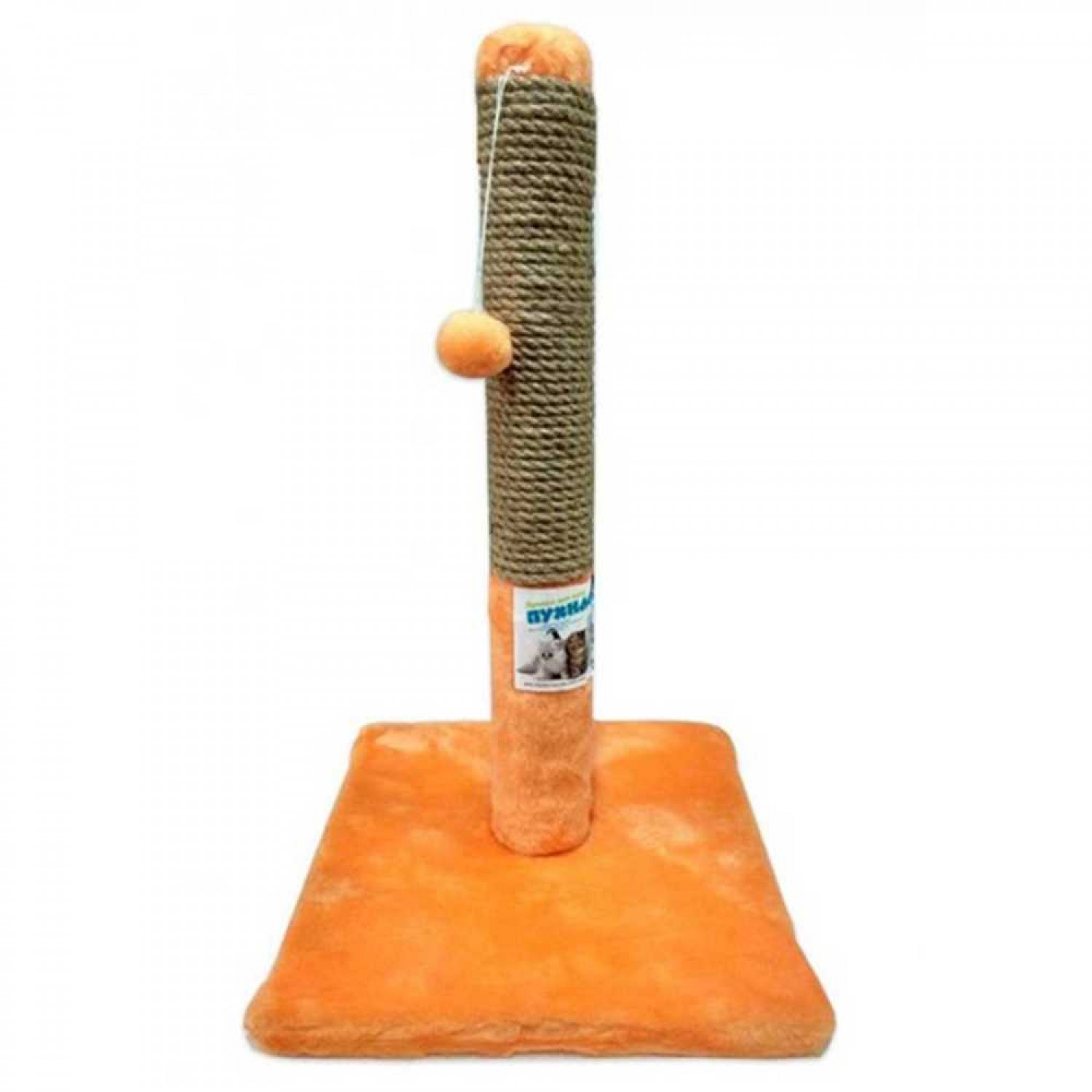 Пухнастики когтеточка для котов столбик на подставке (джут) рыжая.