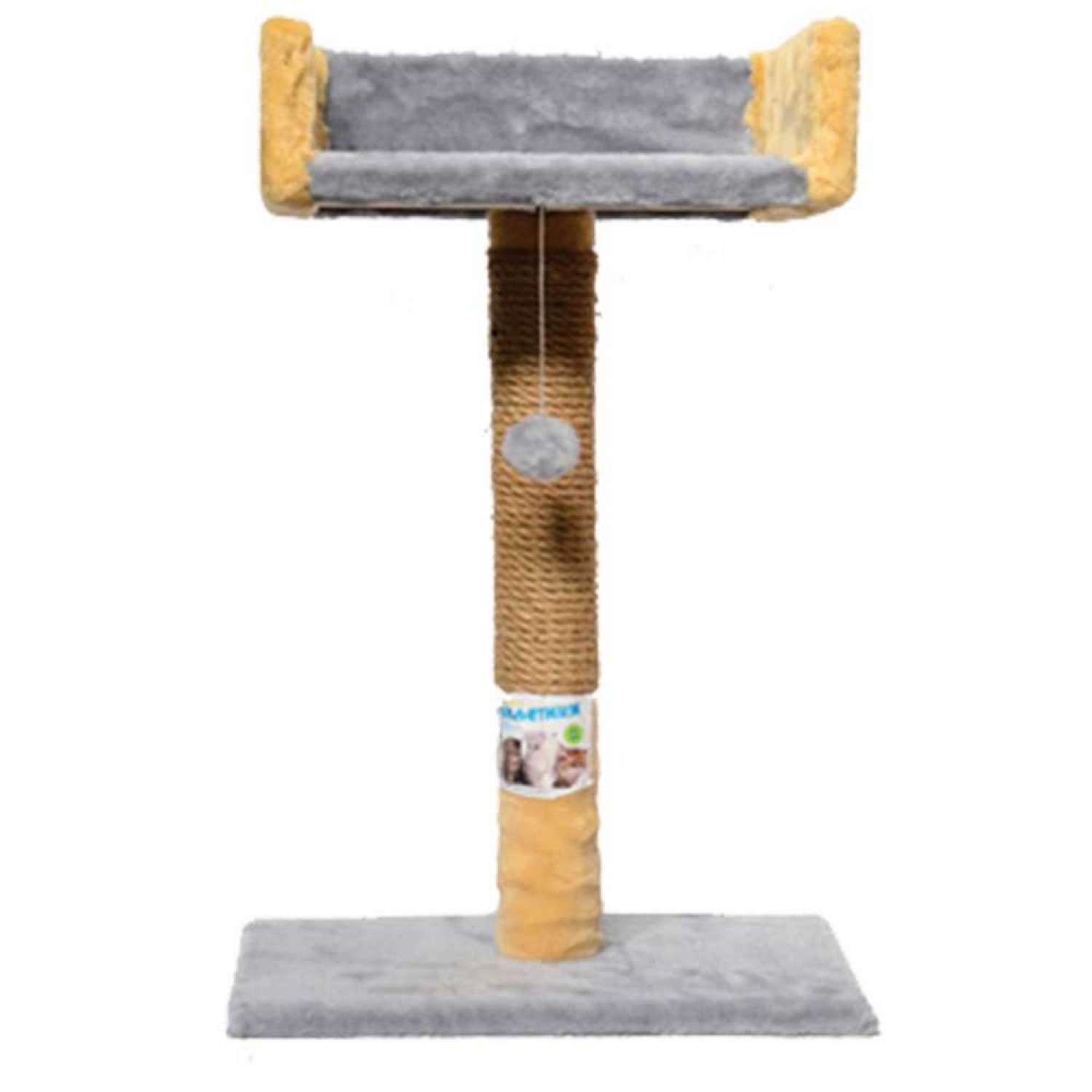 Пухнастики когтеточка для котов столбик с диваном (джут) серая с бежевым.