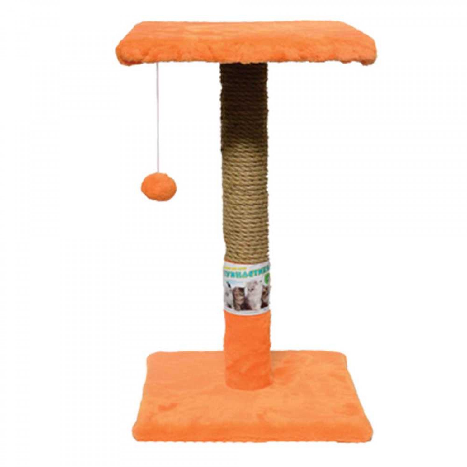 Пухнастики когтеточка для котов столбик с полкой (джут) рыжая.