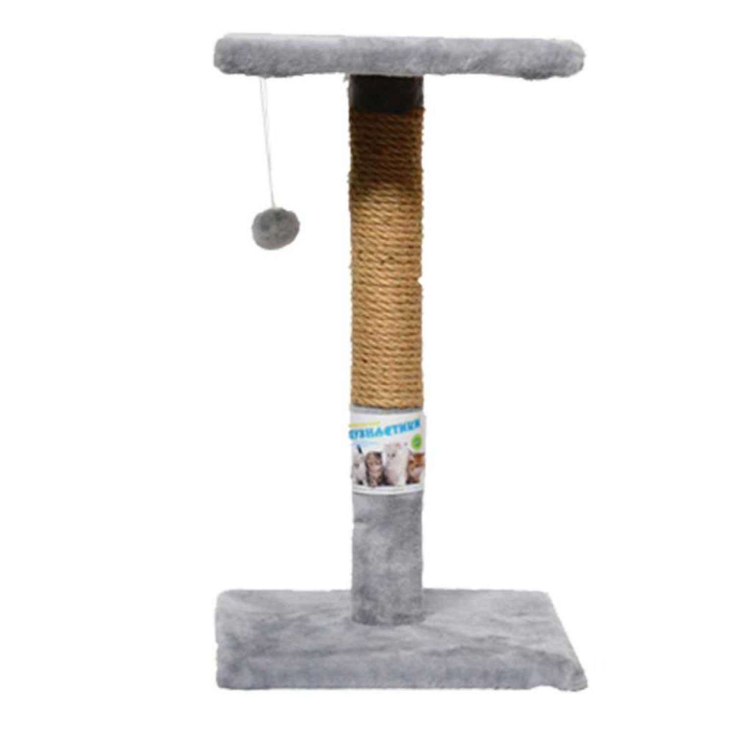 Пухнастики когтеточка для котов столбик с полкой (джут) серая.