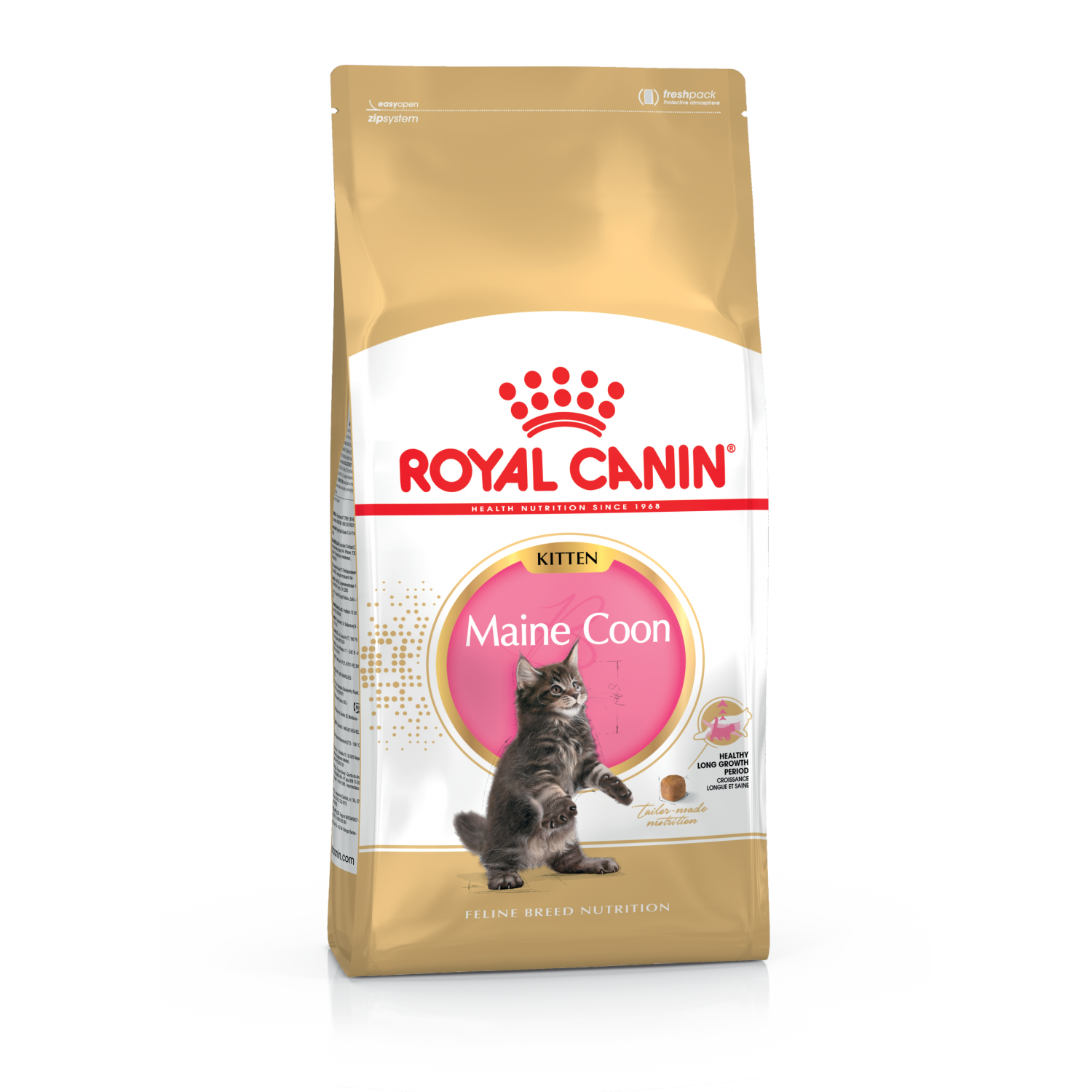 Полнорационный сухой корм для котят породы мейн-кун в возрасте до 15 месяцев. Если Вы счастливый обладатель котенка этой породы, то уже хорошо знаете об их особенностях. Корм Royal Canin MAINE COON Kitten полностью обеспечивает котят всем необходимым в период от 3 до 15 месяцев их жизни - этот корм обеспечит отличное пищеварение Вашему любимцу, поддержку иммунной системы и здоровье зубов и ротовой полости, так как рассчитанный на челюстной аппарат большого размера.
