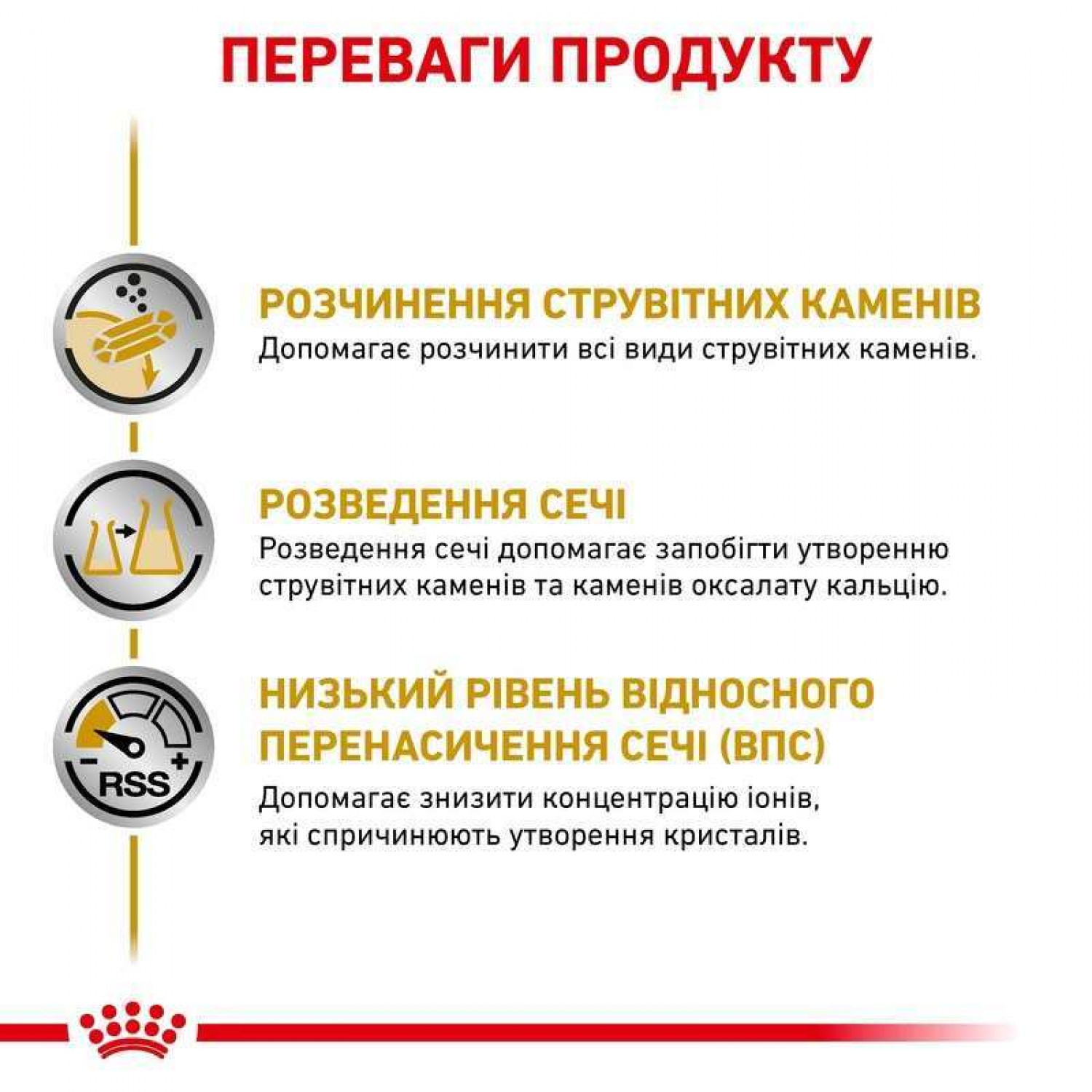 URINARY S/O - полнорационный диетический корм для собак, способствующий растворению струвитов и предотвращающий их повторное образование благодаря своей способности к подкислению мочи, низкому содержанию магния и ограниченному содержанию протеидов высокого качества.