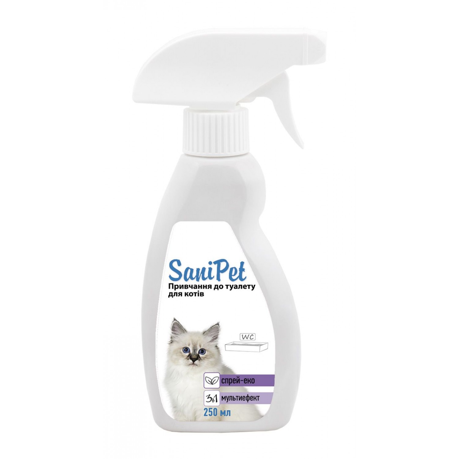Приучающий к туалету спрей SaniPet, для кошек специально предназначается для того, чтобы приучить животное справлять нужду в специально отведенном для этого месте. Вы можете приучить кошку ходить в туалет не только в пределах дома, но и на улицу, с помощью спрея SaniPet, приучающего к туалету.