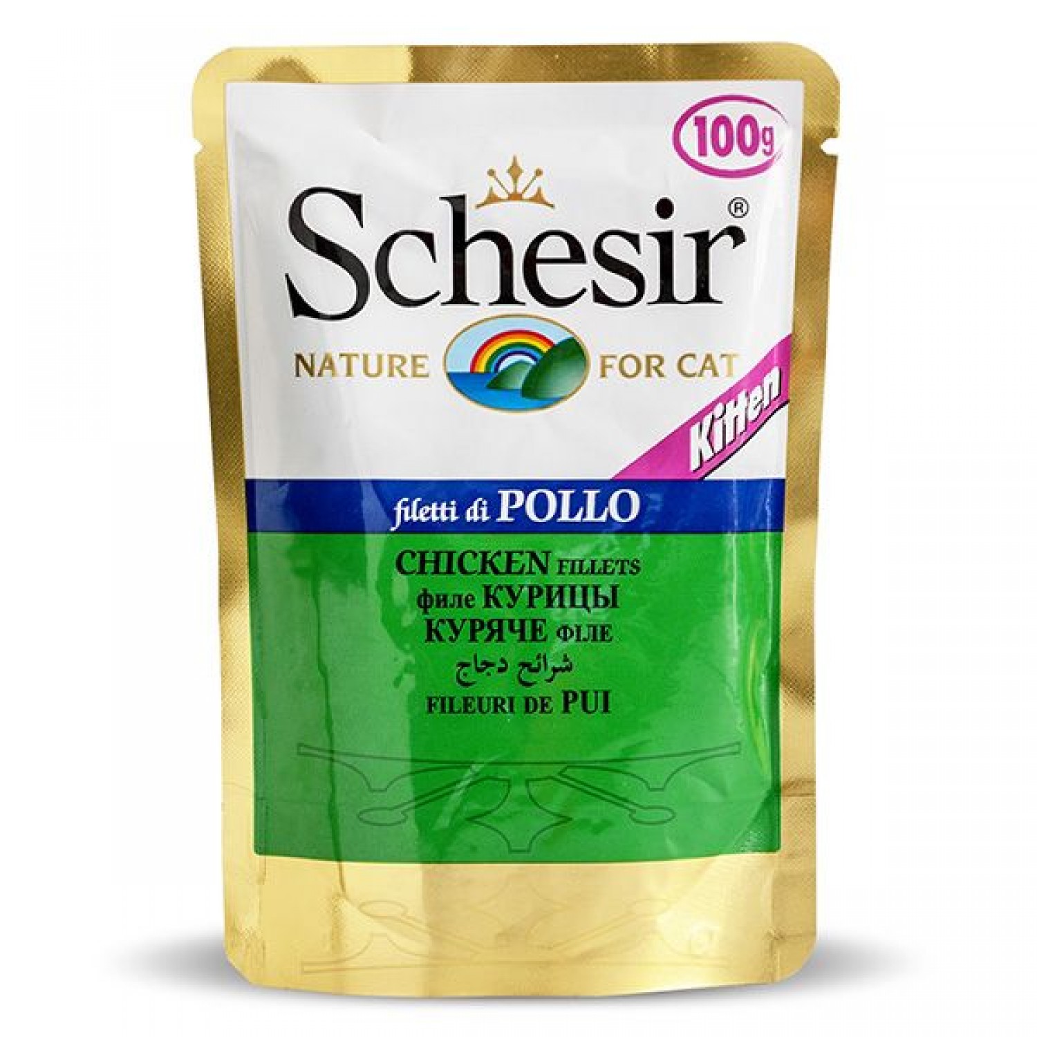 Schesir Kitten Chicken Fillet влажный корм для котят с кусочками курицы.
