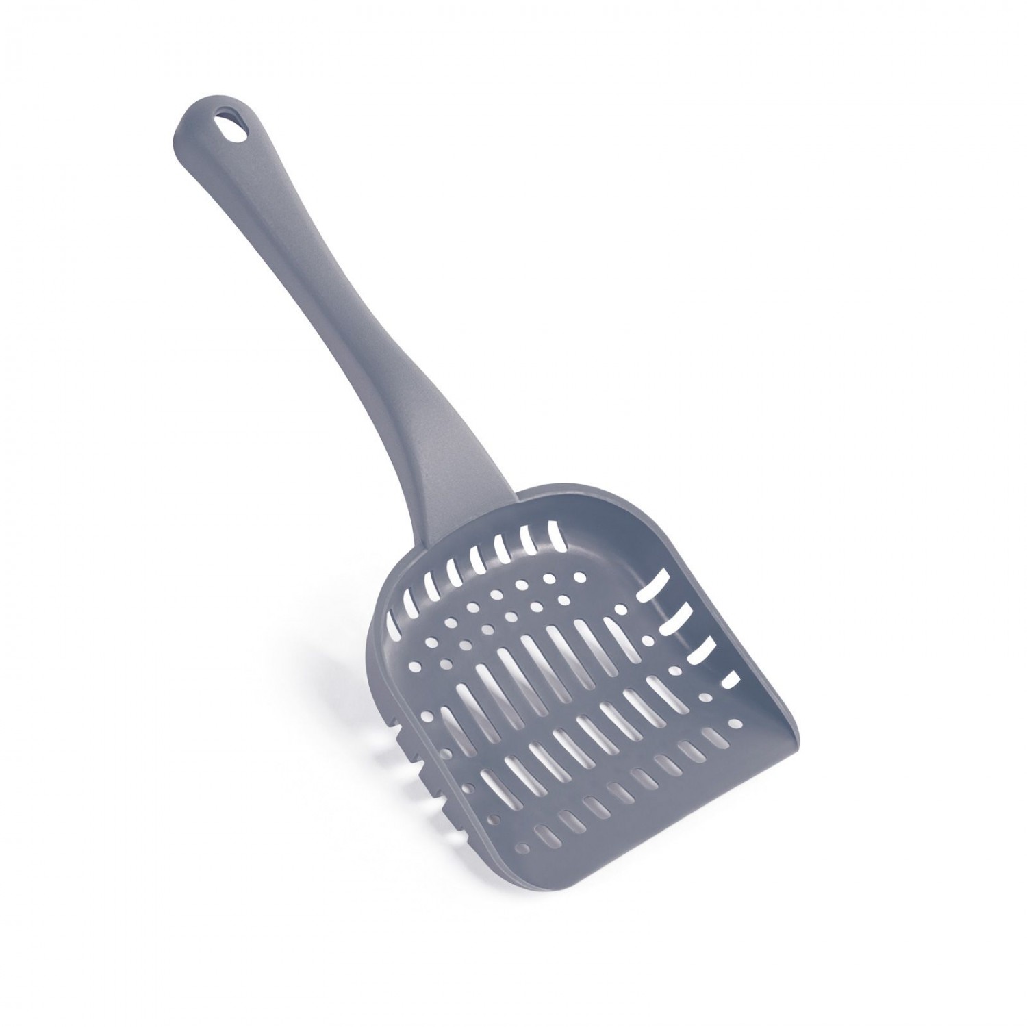 С помощью эргономичной лопатки Вы сможете легко избавиться от твердых отходов из туалета питомца, а мелкие частицы наполнителя останутся в лотке.