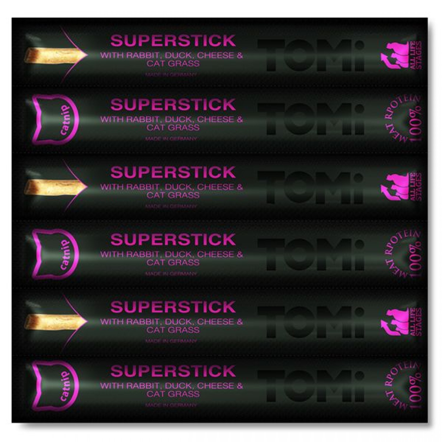 Лакомство для кошек TOMi Sticks Rabbit, Duck, Cheese & Cat Grass - мясной деликатес, приготовленный без ГМО, искусственных красителей, сахара и ароматизаторов, чтобы побаловать вашего маленького хищника невероятно вкусным угощением.