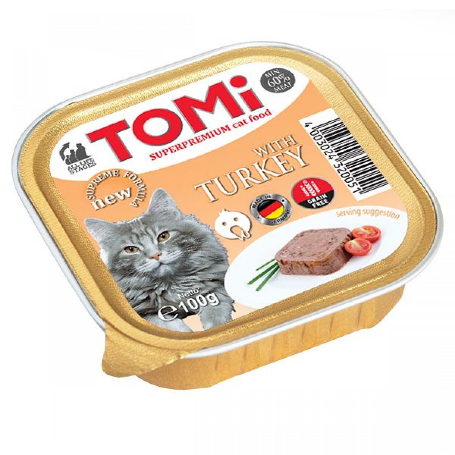 Консервы для кошек TOMi - суперпремиум влажный корм, приготовленный из легкоусвояемого мяса индейки в виде нежнейшего и вкуснейшего паштета. Ароматное индюшиное мясо легко усваивается и является отличным источником протеинов.
